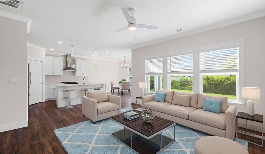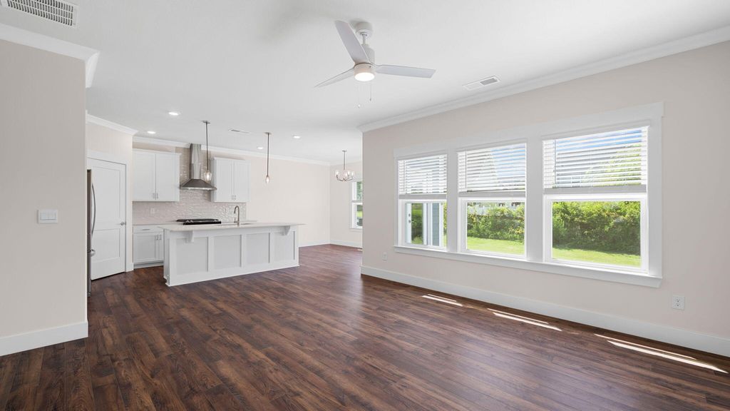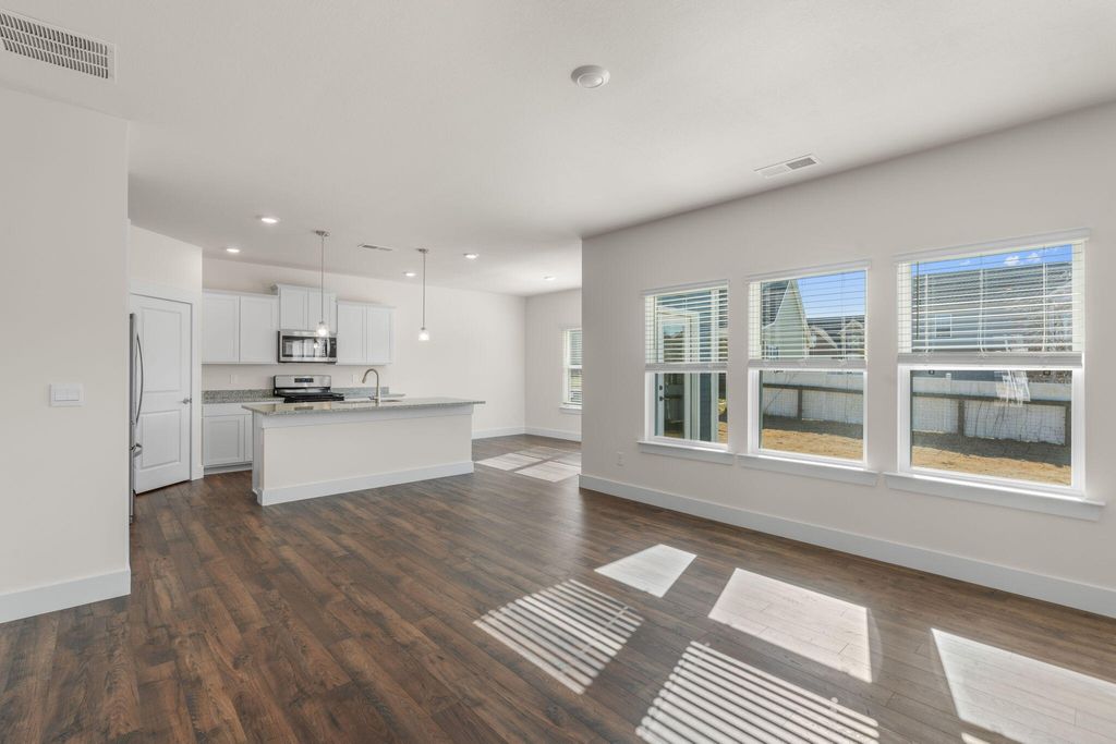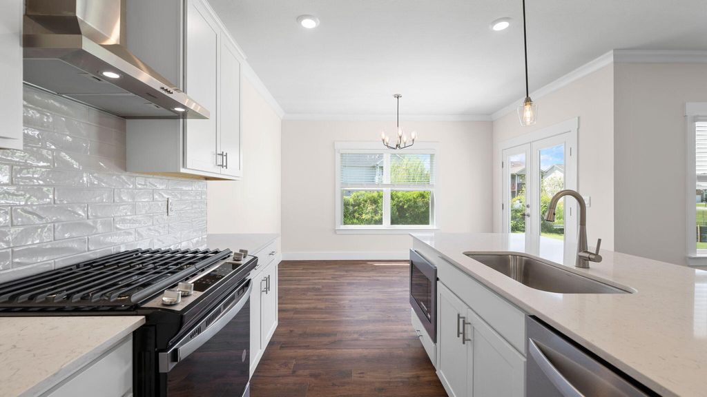 The Darwin floorplan available at Watercolour in Ooltewah is a charming two-story home. The main level is open concept, featuring a spacious kitchen with a pantry and island with countertop seating. The kitchen overlooks an expansive living area, a well-lit breakfast nook, and an outdoor patio. There is also a powder room off the foyer for convenience. Upstairs features a desirable primary bedroom with a walk-in-closet and private bathroom. Two additional bedrooms are also on the upper level, and these each have their own walk-in-closet. An additional bathroom and laundry room complete the upstairs of this home. Express Series features include 8ft Ceilings on first floor, Shaker style cabinetry, Solid Surface Countertops with 4in backsplash, Stainless Steel appliances by Whirlpool, Moen Chrome plumbing fixtures with Anti-scald shower valves, Mohawk flooring, LED lighting throughout, Architectural Shingles, Concrete rear patio (may vary per plan), & our Home Is Connected Smart Home Package. Seller offering closing cost assistance to qualified buyers. Builder warranty included. See agent for details. Due to variations amongst computer monitors, actual colors may vary. Pictures, photographs, colors, features, and sizes are for illustration purposes only and will vary from the homes as built. Photos may include digital staging. Square footage and dimensions are approximate. Buyer should conduct his or her own investigation of the present and future availability of school districts and school assignments. *Taxes are estimated. Buyer to verify all information.