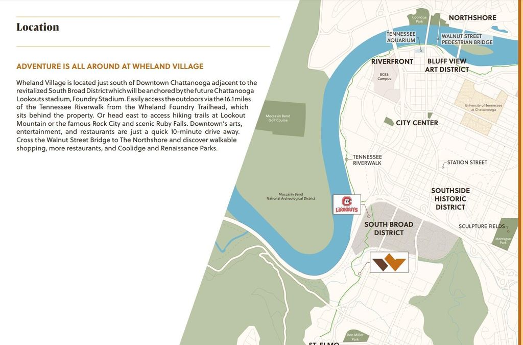 Welcome to Wheland Village - The Future of Chattanooga Living! Experience vibrant living in the revitalized South Broad District, just south of Downtown Chattanooga, and anchored by the exciting future Foundry Stadium and the Chattanooga Lookouts! Step outside and enjoy unmatched access to the stunning Tennessee Riverwalk, with 16.1 miles of scenic trails right at your doorstep. Discover the natural beauty of Lookout Mountain, Rock City, and Ruby Falls, or dive into the lively arts, dining, and entertainment scene in the trendy Northshore neighborhood"”all just minutes away! Unit #305 is a spacious and bright 2 Bedroom, 2 Bath corner unit, designed with an open floorplan that seamlessly connects the kitchen and living room for easy flow and entertaining. With modern finishes throughout and plenty of natural light, this unit offers the perfect combination of style and functionality in a vibrant, up-and-coming neighborhood. Don't miss the chance to be part of one of the most exciting and up-and-coming areas in Chattanooga! Call us today to find out how to make Wheland Village and this vibrant community your new home! Pricing, features, amenities, finishes, locations, and layouts may change without notice. Room dimensions and square footages are approximate. Renderings, photographs, floor plans, amenities, finishes, upgrades, views, and other information described are representational only and do not necessarily depict available units. Availability of units is subject to prior sales or reservations.