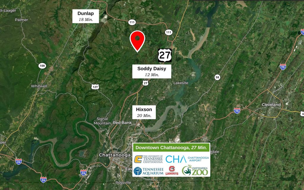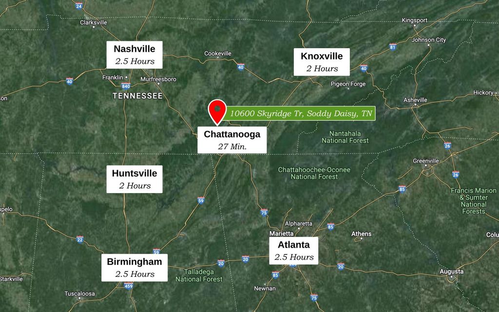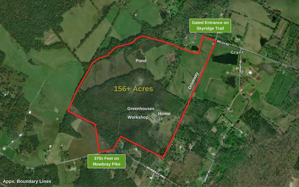 WATCH VIDEO: https://youtu.be/C8JUPRynVMw - RETREAT...INVEST...or BOTH! 156+ Acres in HAMILTON COUNTY, TN. Perched atop Mowbray Mountain, find peace, privacy, and opportunity just 10 minutes to Soddy Daisy conveniences and 30 minutes to downtown Chattanooga. This rare property features a GATED entrance, 4 bedroom HOME, 5 GREENHOUSES, WORKSHOP, and PONDS. Accessed by a private driveway on Skyridge Trail with additional 370+/- feet of frontage on Mowbray Pike. 2-LEVEL barn/workshop with lean-to offers ample room for equipment storage. For those with a green thumb, the property boasts 5 greenhouses perfect for hobbies, gardening, an INCOME-PRODUCING business, or bringing your homestead dreams to life. Pastures, woodlands, and 2 ponds further enhance the acreage opportunity found in north Hamilton County. Currently zoned A-1 (Agricultural), enjoy wildlife watching and HUNTING in your own backyard. The hilltop home hosts a main level primary suite, hardwood floors, and tall windows that invite natural light and views of the woods beyond. Cozy up by the FIREPLACE in the living area or enjoy the warmth of hardwood floors throughout the home with the convenience of the nearby powder room, laundry closet, and porch walkout. Upstairs, you'll find 3 additional bedrooms and 1 bathroom, ideal for extra living space, HOME OFFICE, or playroom. Serene WRAP AROUND PORCH to take in the stunning landscape and towering trees. Less than 30-minute drive to the ''Scenic City'' of Downtown Chattanooga. Enjoy the homestead mountain living experience, with gated entrance, private surroundings, and endless possibilities for recreation, gardening, agriculture, or development. County taxes only and no state income tax in TN! (2 parcels to transfer: 039 004 and 046 006.02. Information provided is deemed reliable but not guaranteed. Buyer responsible for verifying all information deemed important to Buyer. Some images may be virtually staged. Number of bedrooms is representative of appraisal standards.)