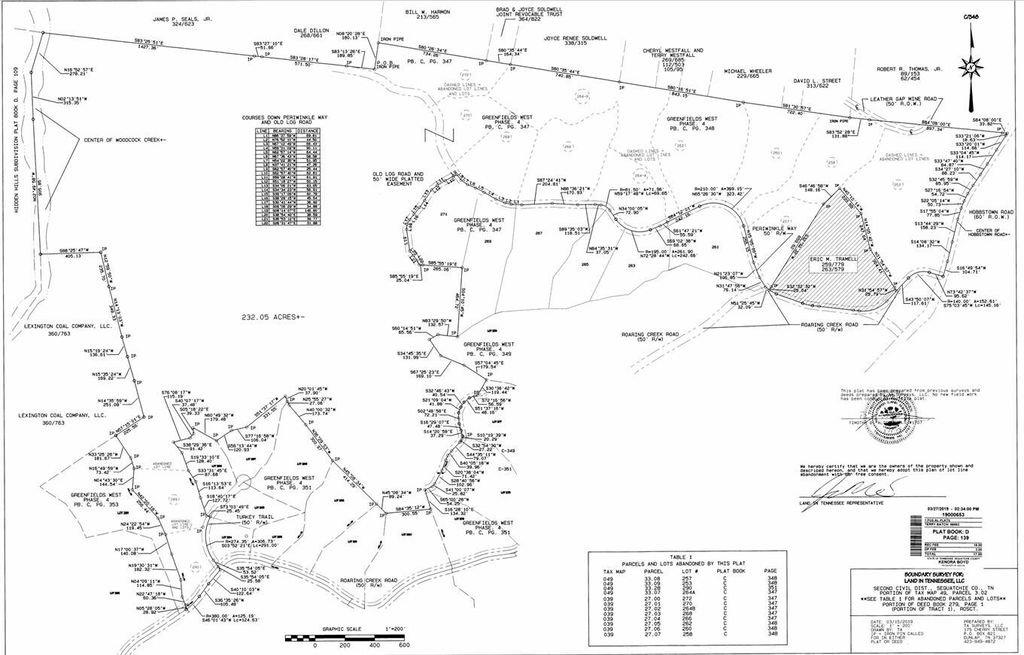 The ''Eagles Leap'' Tract. Here is a rare opportunity to own a large-acreage tract within the gates of Fredonia Mountain Nature Resort (FMNR). FMNR is a 3,500 acre gated-community atop the Cumberland Plateau designed with features intended to connect people with nature such as hiking/biking trails, parks, lakes, ponds and a community lodge. This 232.05 acre tract has been specifically set aside by the current owner from its continued development and declared as ''conserved land'' to retain its considerable natural and scenic values but with substantial retained rights for its perpetual use. The tract has therefore been exempted from the FMNR home owners' association (''HOA''). Restrictive Covenants ensuring the conservation values of the tract are recorded in a Conservation Easement (''CE'') administered by The Foothills Land Conservancy. Certain provisions of the CE do, however, allow for the installation of improvements such as roads, residences, outbuildings and ancillary improvements. Other notable allowances include: Hunting, Wildlife Management, Leasing, Agriculture, Forestry and Forestry Management, Public Access and Subdivision (one division is allowed along a designated severance line to create a 160+/- acre parcel and a 70+/- acre parcel). Views extend from the upland brow over the Woodcock Gulf and Sequatchie Valley beyond. Woodland habitats flourish under the deciduous Oak / Hickory Forest canopy and vary with elevations ranging from 2240 ft highland plateau to 1640 ft watershed cove. Creek gorges with tumbling water falls, glistening pools and moss-covered stones contain native species such as rhododendron, hemlock, mountain laurel and native azalea. Springtime wildflowers abound with may apple, trillium and lady slippers. Wildlife common to the area is found here including deer, turkey, opossum, raccoon, bob cat and many varieties of local and migrating birds. There are several points of convenient access to the tract from Hobbstown Rd (a public ROW) and from private roadways within FMNR: Roaring Creek Rd, Periwinkle Way and Turkey Trail. The two designated 1 acre home sites (in fixed locations; one on each side of the permitted division) are near Periwinkle Way and Turkey Trail for convenience of construction and installation of utilities. Under the current CE, there are no minimum square footage requirements or architectural control elements regarding the construction of a future residence. If a future owner were to voluntarily choose to join the FMNR HOA it would come with those certain privileges and obligations the HOA affords. The local water utility notifies of a 'temporary pause' on approving water taps due to a repair project with anticipated completion Sept 2026.This tract is appealing to those who value superior land features especially when held in the useful-continuity of a large acreage tract. Further, the perpetual nature of the conservation easement assures its value-continuity as a legacy piece to future generations.