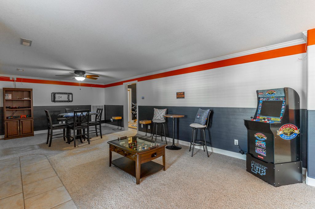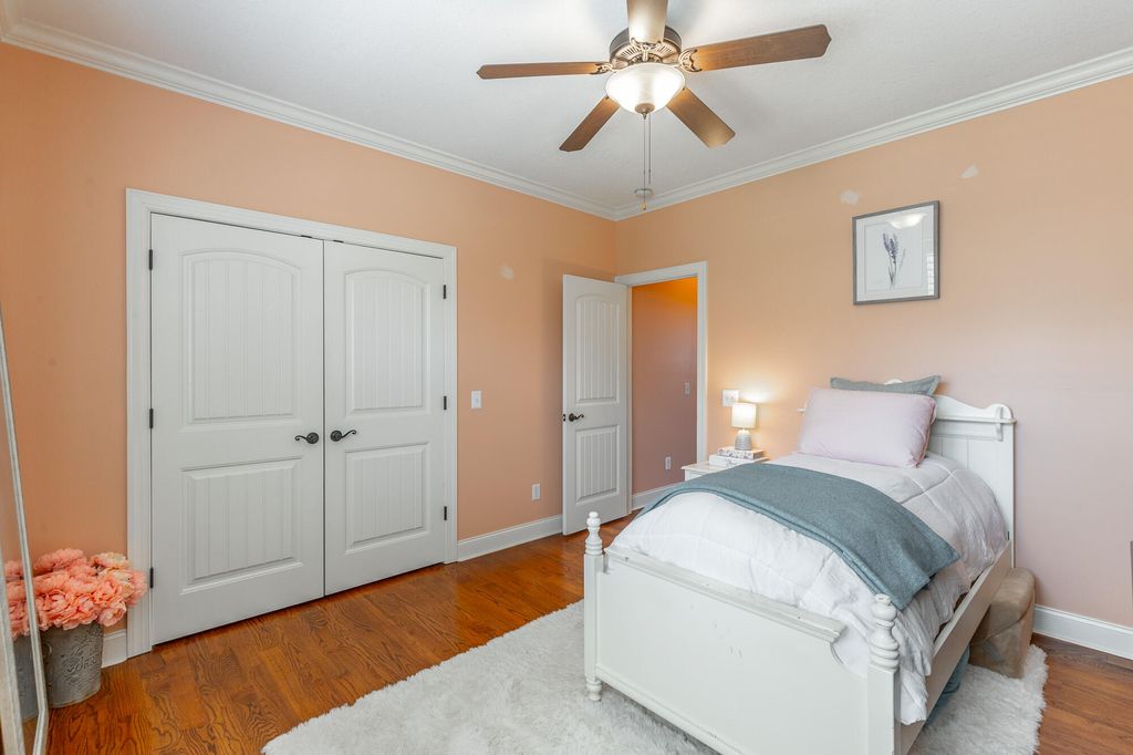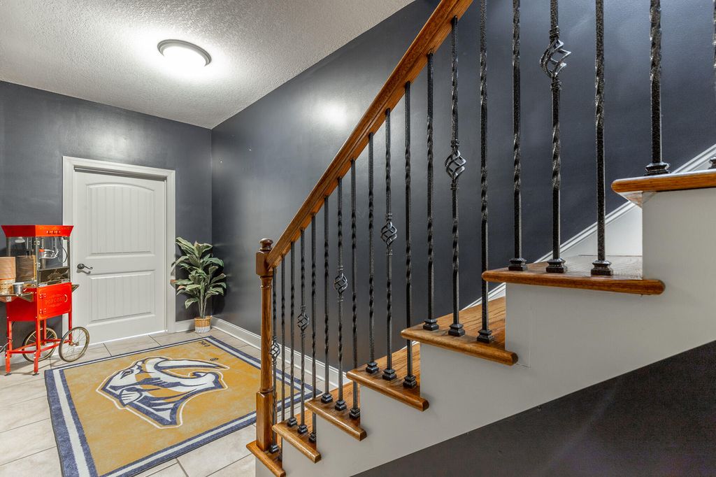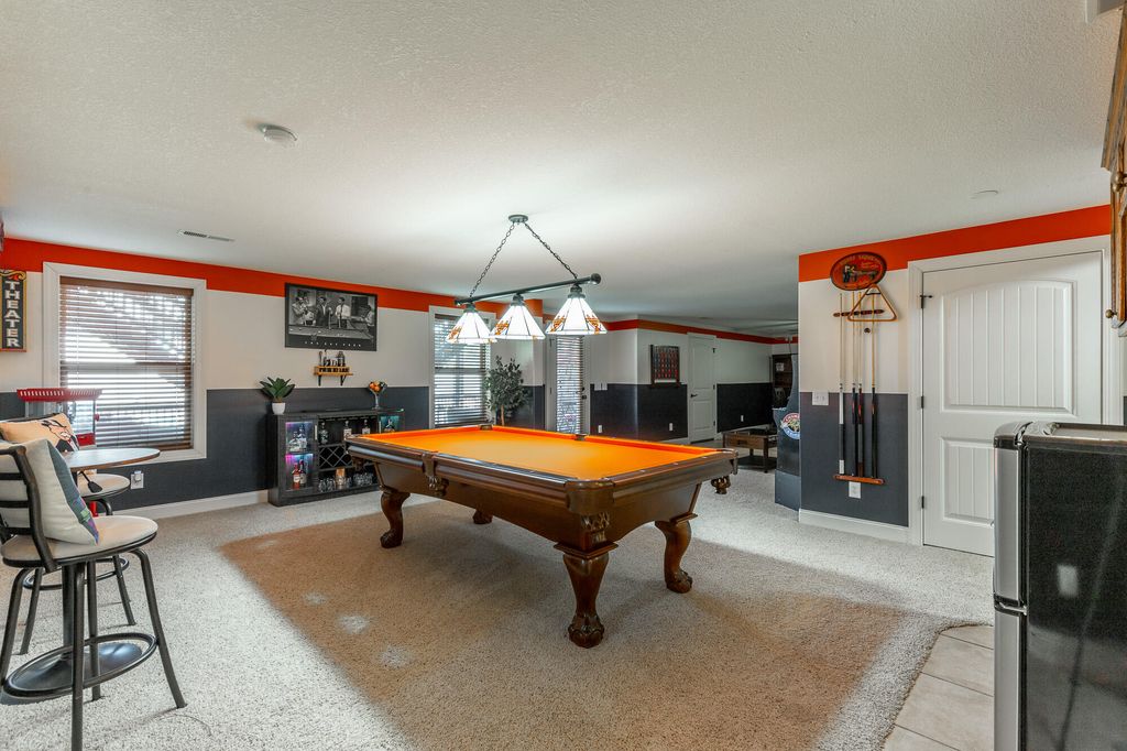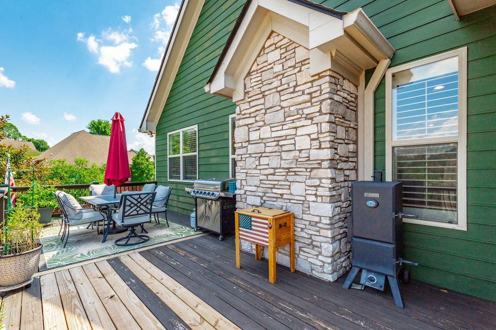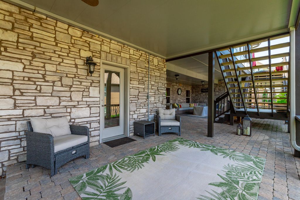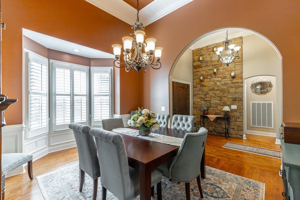 Welcome to this stunning, meticulously maintained home offering over 5,000 square feet of elegant living space in one of the area's sought-after neighborhoods. With beautiful stone work on the exterior this home is a showstopper. The home features 4 spacious bedrooms, 4 full baths, and a half bath, perfectly designed for both everyday living and entertaining. The main level offers a well-appointed primary suite with a large bath, walk-in shower and separate tub, along with two additional bedrooms and a full bath tucked away on the opposite side of the home for privacy. The heart of the home is a large, open kitchen featuring an eat-at bar, breakfast area, and a cozy keeping room with a gas fireplace"”perfect for casual gatherings. Kitchen features gas stovetop, granite countertops and other stainless appliances. There's also a grand living room with its own gas fireplace and a formal dining room framed by soaring ceilings and rich hardwood floors. Upstairs, you'll find a private en suite bedroom with a full bath, a sitting area, and a spacious bonus room"”ideal for guests, a home office, extra storage or a hobby space. The basement level is designed for fun and function, offering a massive recreational space large enough for a pool table, a dedicated media room with theater-style seating, a workout room (big enough for a sauna, though the sauna does not convey), a wine cellar, and a full bath. Plus, there's an additional one-car garage on this level"”perfect for a workshop, lawn equipment, or storage. Practical features include a central vacuum system, a separate laundry room with a utility sink, and a two-car garage on the main level. Roof is less than 2 years old. Outside, the home is just as impressive, sitting beautifully on a corner lot with extensive decking across the back, plus a covered patio underneath"”ideal for outdoor entertaining. The professionally landscaped yard offers both beauty and privacy. This coveted community includes a neighborhood pool, clubhouse, and even a hidden lake for residents to enjoy. If you've been searching for a home that truly has it allspace, style, and amenitiesyou've just found it. Welcome home! Buyer is to verify any and all information they deem to be important, including but not limited to sq. ft., school zone, restrictions, lot lines, acreage, flood zone, etc