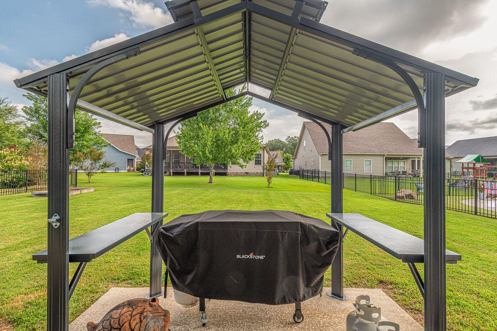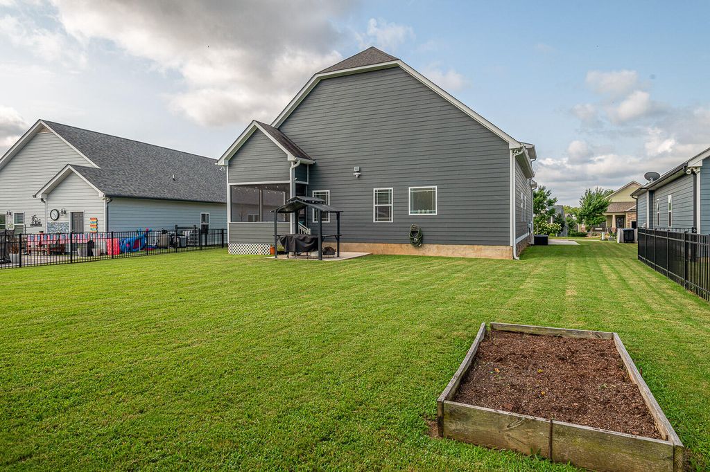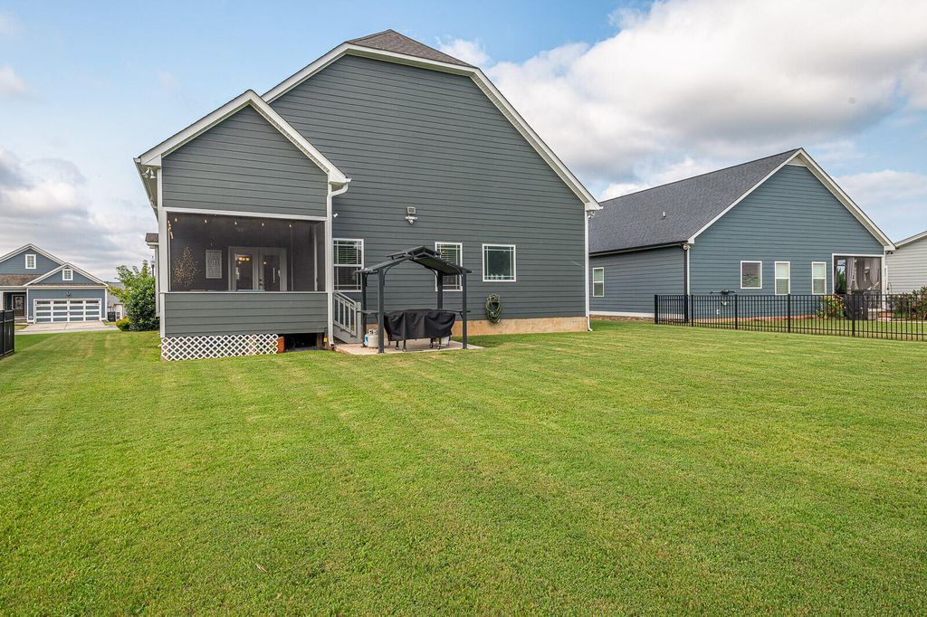 Welcome to 7925 Frostwood Lane in the popular Providence Point neighborhood in desirable Ooltewah! This four bedroom, three bathroom home has wonderful views of White Oak Mountain! The main level of living features a spacious living room with coffered ceiling and gas logs fireplace. Eat-in kitchen with island, granite counters, tiled backsplash and two pantries. (All kitchen appliances remain.) Primary bedroom with ensuite bathroom with dual sink granite counter vanity, soaking whirlpool tub, separate tiled shower and walk in closet. Two additional bedrooms (each with walk in closets), a full bathroom and large linen closet in hallway. A spacious laundry room completes the main level. Upper level has a large bonus room/fourth bedroom. Full bathroom and closet with access to walk-in attic storage space. Exterior features include a covered front porch, rear screened porch, open grilling patio, level back yard, two car garage with extra parking pad on side of house. Fully encapsulated crawl space with dehumidifier. Call or text today for your private tour!