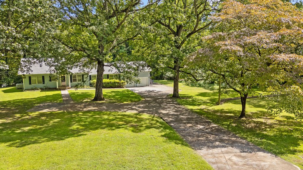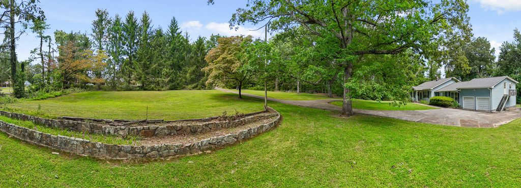 Classic Signal Mountain home ½ mile of sidewalk to Thrasher Elementary. Total of FIVE Bedrooms and FIVE Full Bathrooms on 1.15 Acres gives you a variety of configuration options. Clockwise from front door: Guest Master-on-the-Main (3/4 bathroom), Paneled Office with closet, Master-on-the-Main with fireplace and door to deck, shared hall bathroom then 3rd bedroom (counting the office as a BR). Continuing clockwise from the living room: Kitchen, door to Rear Deck, Laundry Room, door to Garage and Dining Room with Glass-Door Office (with closet). Above the garage is a Separate apartment with private entrance and full bathroom currently used as a work-out room. August 2025 Property Inspection available upon request. Spare lot right of driveway is 99' by 130'/202' and deeded separately can support a small home which could be sold separately.