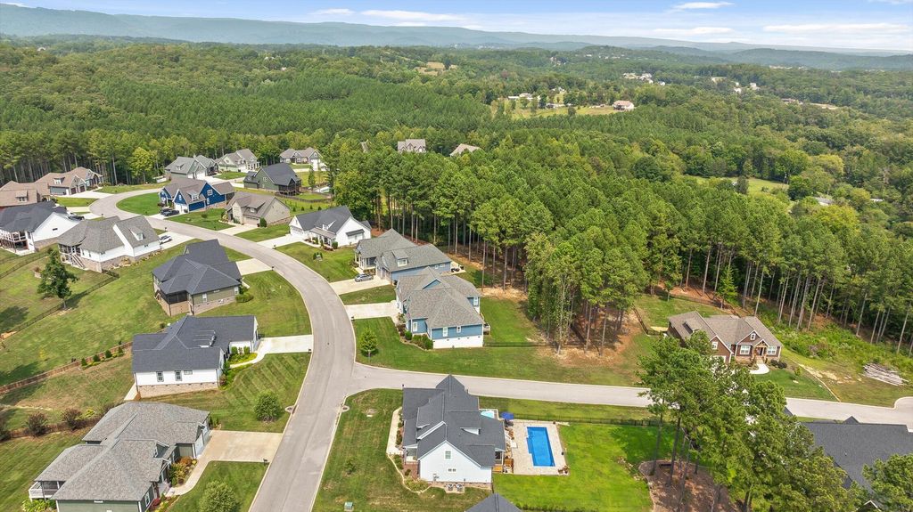 Welcome to The Farm in Soddy Daisy! Live life near the lake. This beautifully designed home pairs modern comfort with inviting style, offering the perfect retreat for everyday living and entertaining. Step inside to gleaming hardwood floors and an open-concept layout that seamlessly connects the spacious dining area, designer kitchen, and vaulted-ceiling living room with a cozy gas fireplace. The kitchen is a showstopper, featuring quartz countertops, shaker-style cabinets, a farmhouse sink, stainless steel hood vent, and a large island with breakfast bar seating and built-in microwave. A generous walk-in pantry and stylish finishes complete the space. The main-level master suite is a true sanctuary, with a vaulted ceiling, private access to the screened porch, and a spa-like bathroom boasting dual sinks, a freestanding tub, and walk-in shower. A convenient half bath for guests and a dedicated laundry room round out the main floor. Upstairs, you'll find a versatile loft-style living area or office, three additional bedrooms, a full bathroom, and plenty of walk-in attic storage. Out back, enjoy your own personal oasis: a large fenced yard with a sparkling salt water pool (a $93,000 upgrade), plus both covered/screened and open-air decks stretching nearly the length of the home"”perfect for entertaining or relaxing year-round. This home combines thoughtful details, flexible spaces, and resort-style outdoor living in one of Soddy Daisy's most desirable neighborhoods. The whole interior was just repainted. Don't miss your chance to see it"”schedule your private tour today!