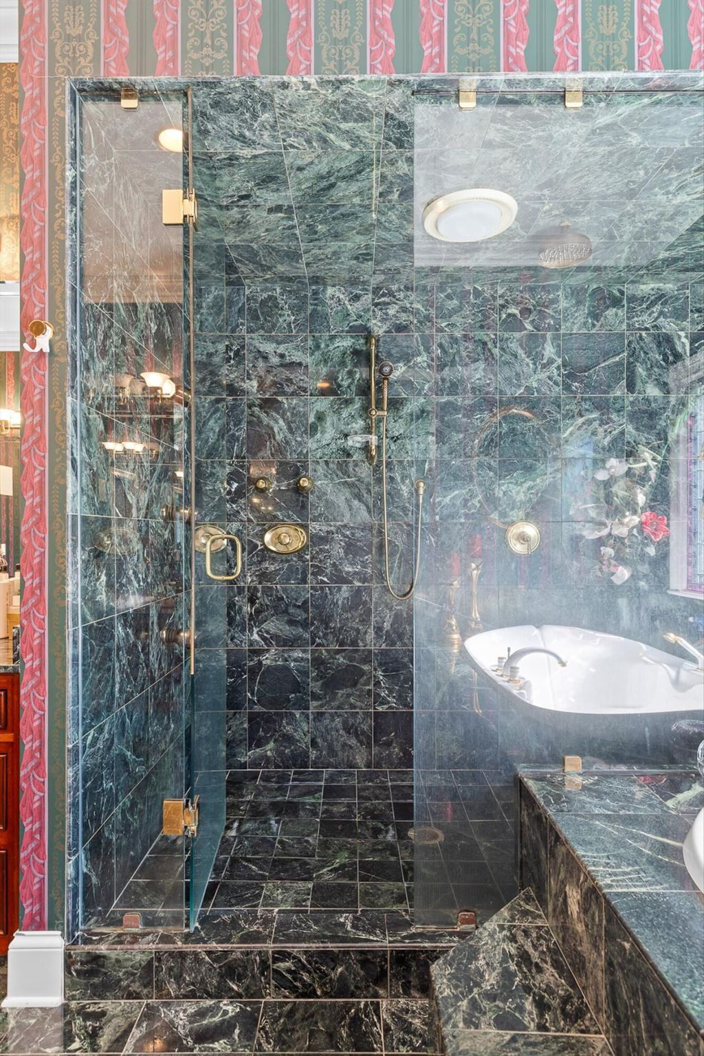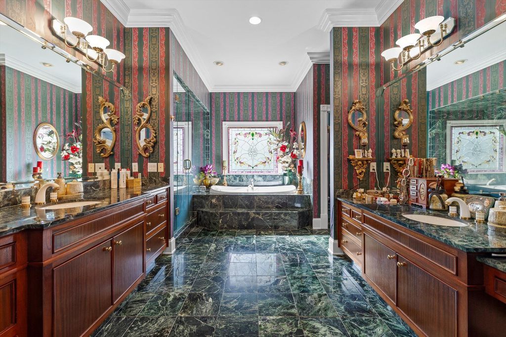 | INTERIOR | Bidet, Bookcases, Breakfast Bar, Built-in Features, Cathedral Ceiling(s), Central Vacuum, Chandelier, Coffered Ceiling(s), Crown Molding, Double Vanity, Eat-in Kitchen, Entrance Foyer, Granite Counters, High Ceilings, High Speed Internet, Kitchen Island, Natural Woodwork, Open Floorplan, Pantry, Sauna, Soaking Tub, Storage, Vaulted Ceiling(s), Walk-In Closet(s), Wet Bar |