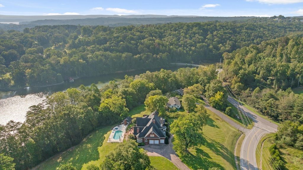 From mornings by the water to evenings by the pool, this Lake Chickamauga estate offers 2.92 acres of lake living at its finest. Inside, a Monticello-inspired domed ceiling and sweeping spiral hardwood staircase set the tone for timeless elegance. The gourmet kitchen is designed to impress with granite countertops, Sub-Zero refrigeration, and Thermador appliances, flowing seamlessly into a gathering room with a cozy fireplace. With 4 bedrooms and 5 baths, including a primary suite featuring a boutique-style closet, this home balances comfort with sophistication. Step outside to enjoy the resort-style amenities: an inground heated pool, pool house with jacuzzi, and plenty of space to entertain or simply relax in privacy. This property is more than a home, it's a lifestyle, blending breathtaking lake front views with every detail designed for luxury living. With the lake just beyond your backyard, you'll enjoy stunning views and the full Lake Chickamauga lifestyle.