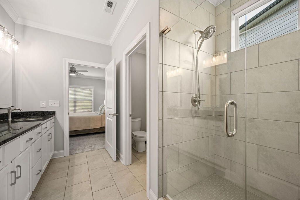 | INTERIOR | Ceiling Fan(s), Crown Molding, Double Vanity, Eat-in Kitchen, Entrance Foyer, Granite Counters, High Ceilings, Kitchen Island, Master Downstairs, Open Floorplan, Pantry, Recessed Lighting, Walk-In Closet(s) |