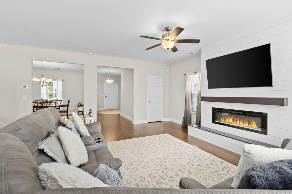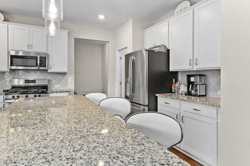 The Highlands at Belleau Ridge is a peaceful neighborhood with scenic views of White Oak Mountain. This spacious home is a delight to behold with an open floor plan that is perfect for entertaining. Each room is spacious, from the great room with fireplace to the separate dining room. The kitchen is enormous with a large, granite topped island and fantastic pantry. Stainless appliances include a gas cooktop, dishwasher, microwave and refrigerator. Tons of storage space and prep area are here. Steps away are a delightful home office and mudroom leading to the generous two-car garage. Upstairs, get away from it all with FIVE spacious bedrooms. The primary suite features a tray ceiling, glamorous bath with separate soaking tub and shower, double vanities and water closet and a walk-in closet to be envied. All other bedrooms are well sized and served by Jack and Jill baths. The laundry room is on this level for the utmost in convenience. Relax outside on the covered front porch or on that back patio overlooking the pond and woods. Peaceful, serene and ready for you to make this your new home!