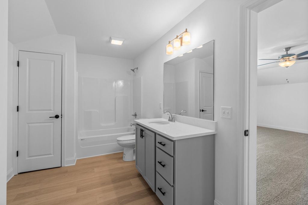 Welcome to James Creek, a sought-after community in beautiful Ooltewah, TN! The Daisy floor plan is a thoughtfully designed 4-bedroom, 3-bath home offering style, comfort, and flexibility for any lifestyle. Its inviting front porch pairs classic brick with charming board-and-batten siding, creating timeless curb appeal. Inside, the open-concept design features a spacious great room"”perfect for entertaining family and friends. The kitchen is appointed with granite countertops, stainless steel appliances, and a pantry for extra storage. The main level includes a generous primary suite, a second bedroom, a full bath, and a conveniently located laundry room. Upstairs, you'll find two sizable bedrooms and a third full bath, providing plenty of room for family, guests, or a home office. With the HOA maintaining each lawn, you'll enjoy low-maintenance living without sacrificing style. County only taxes and EPB fiber internet availability are additional perks! Ideally located just minutes from Cambridge Square and I-75, James Creek offers both convenience and charm. Builder includes a one-year warranty. Call to schedule your private tour, today! Photos are of the Daisy floor plan. Finishes will vary in this home.
