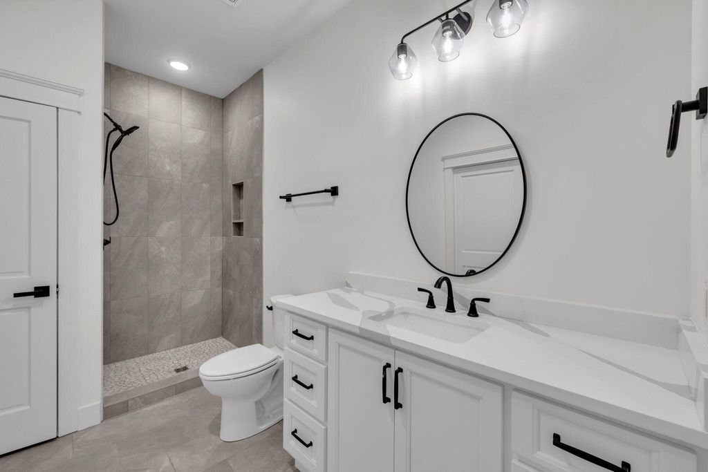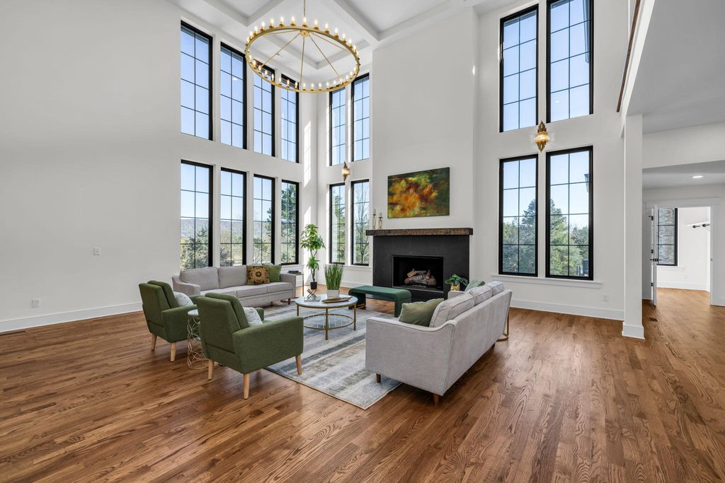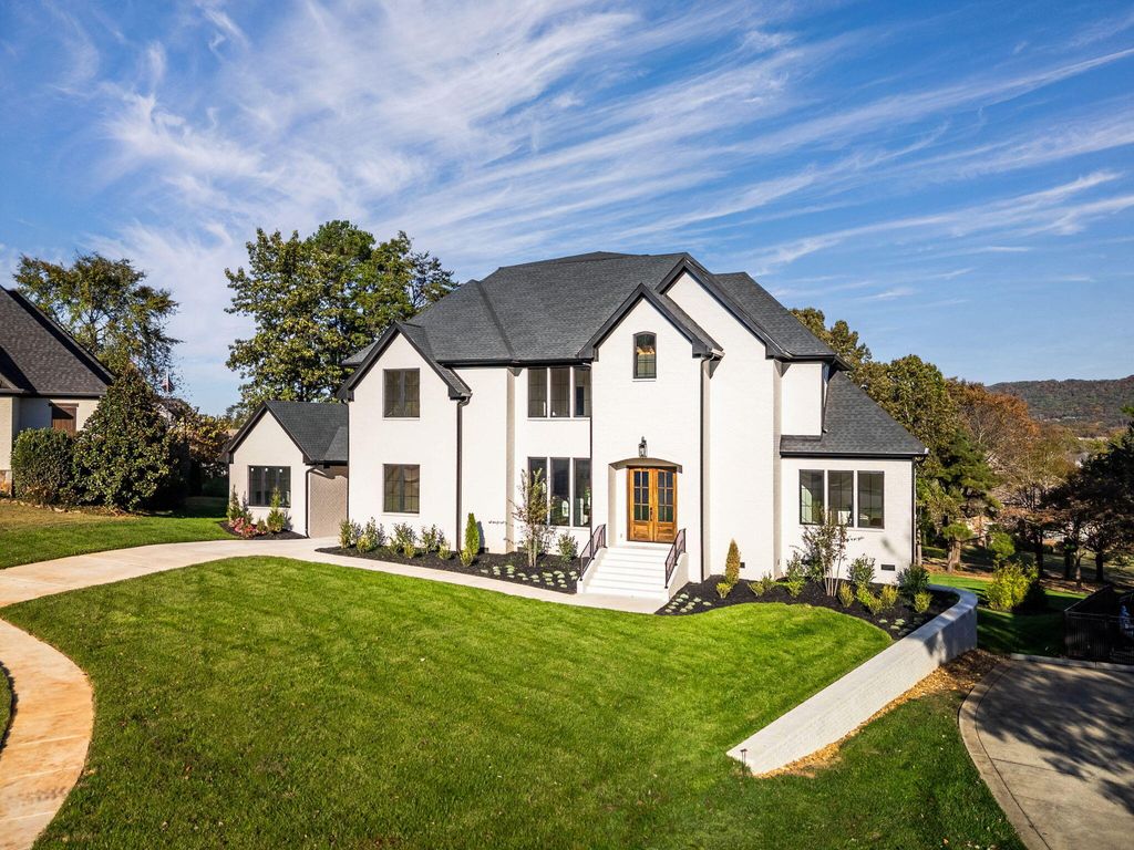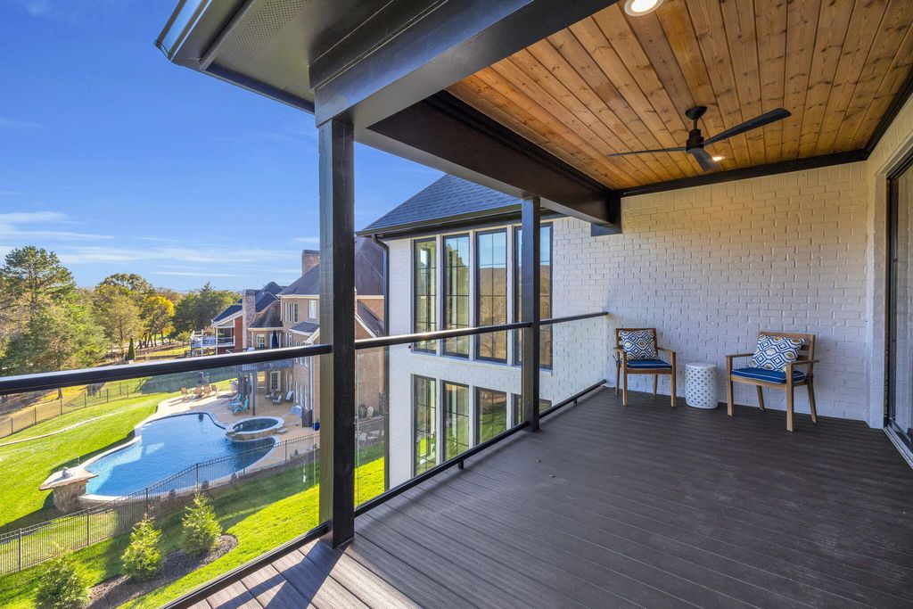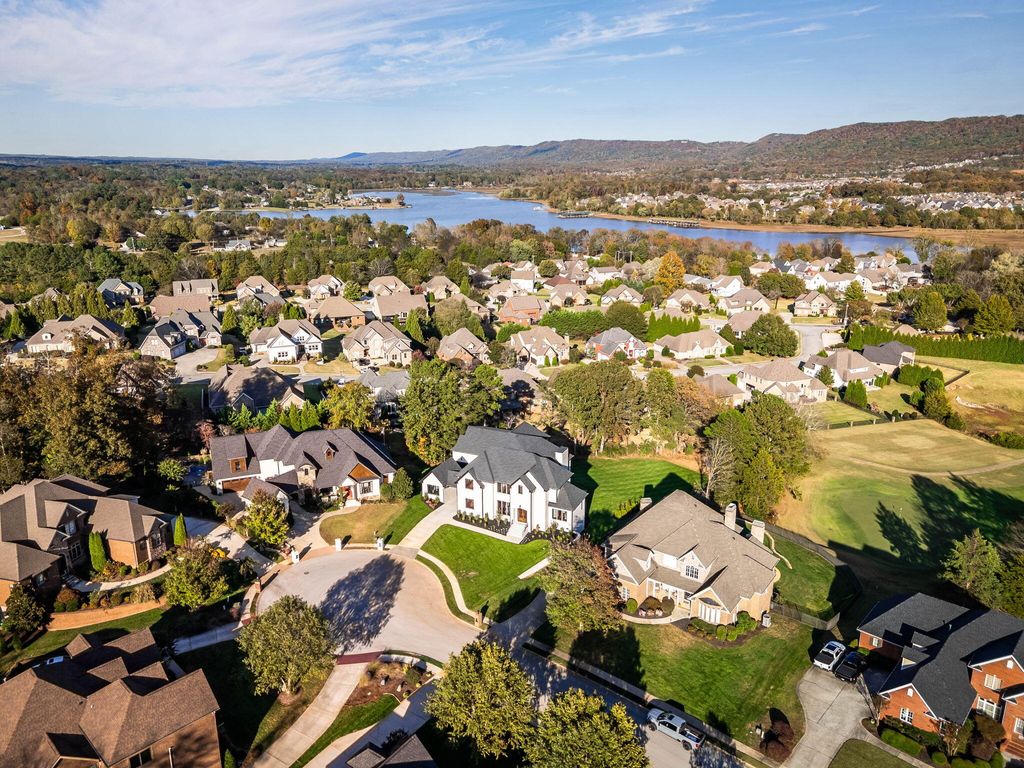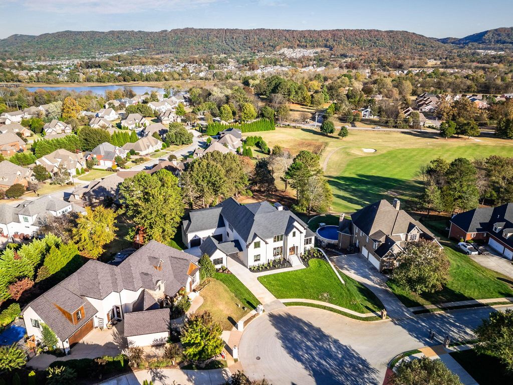 Experience luxury living at its finest in this stunning all-brick new construction nestled on the prestigious golf course at Hampton on the Lake Gated Community. Spanning 7,800 sq ft, this exquisite home offers five spacious bedrooms, each with its own full bath, and 5.5 beautifully appointed bathrooms. The main level showcases gleaming hardwood floors throughout, leading to a grand two-story great room with a cozy fireplace. The dining area features elegant tongue-and-groove ceiling details, creating an inviting atmosphere for gatherings. The gourmet kitchen is a chef's dream, outfitted with quartz countertops, a pot filler over the gas range, Thermador appliances, a built-in drawer microwave, a prep sink in the island, and additional cabinetry in the island for ample storage. A hidden, massive pantry and a butler's pantry with a wine cooler enhance the functionality and style of this culinary space. Step outside to a covered balcony with views of the mountain and golf course. Work from home in the dedicated main-level office, or retreat to the main-level master suite with a full bath and tile shower. Upstairs, find three more bedrooms, including a grand primary suite with a huge custom closet, double vanities, a soaking tub, and a tile shower, perfect for relaxation. The keeping room off the primary suite is added space to relax and enjoy a good book. You also have your own private balcony. The lower level transforms into a private entertainment haven, with a massive den, full kitchen, custom wine closet with glass doors, an additional bedroom with full bath, and a state-of-the-art theater room. Step outside to the patio off the den for outdoor living and entertaining. This is more than a home, it's a luxurious retreat on one of the most beautiful golf course settings. Schedule your private tour today!