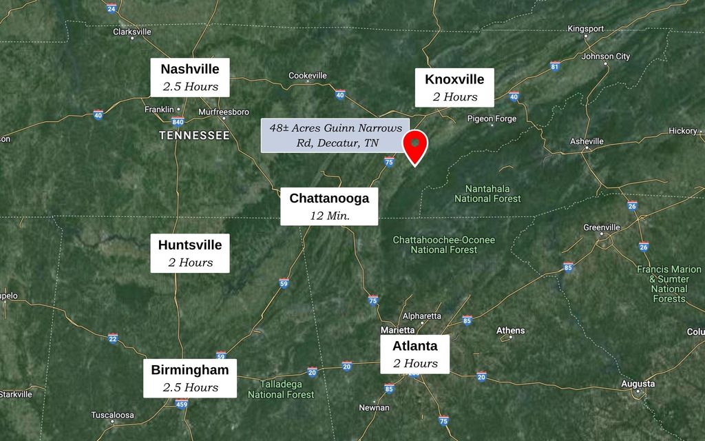 48± ACRES of MOUNTAIN Beauty in Meigs County, TN. Build your own private mountain retreat on this stunning property nestled in the scenic hills of East Tennessee. Set at an impressive 1,100± feet in elevation, the positioning offers breathtaking LONG RANGE VIEWS that stretch for miles! Maximize quiet mornings surrounded by nature or panoramic sunsets from your front porch. This property delivers beauty, peace, and possibility. The landscape is rich with hardwoods and abundant WILDLIFE, making it a haven for nature lovers, hunters, and outdoor enthusiasts. Create your own mountaintop manor, charming farmhouse retreat, or a recreational hunting cabin tucked along the bluff. Secluded, yet connected with Spectrum HIGH-SPEED internet access. Easily accessible LOCATION is just minutes from Hwy 58 and the charming town of Decatur along the TENNESSEE RIVER, you'll enjoy the perfect balance of privacy and convenience. 20-minute drive to Athens or Dayton, TN. Just 10 miles from I-75, offering an easy 1-hour drive to major cities like Chattanooga and Knoxville, placing you within reach of top dining, shopping, medical, and entertainment options. 60 miles from Knoxville's McGhee Tyson Airport. Ideal opportunity to benefit from Tennessee's NO STATE INCOME TAX status. Electricity and water provided by Volunteer Energy Coop and the Town for Decatur. From weekend getaways to full-time country living, this property is rich with potential. Schedule a private tour today! (Any and all property lines on photos are simulated and are approximate. Buyer is responsible to do their due diligence to verify that all information is correct, accurate and for obtaining any and all restrictions for the property deemed important to Buyer.)