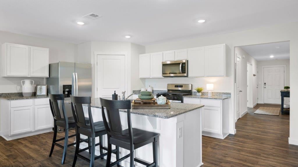 The Cali floorplan is available in the Owensby Farms Community in Dayton, TN. This single-story layout optimizes living space with an open concept kitchen overlooking the living area, dining room, and covered patio. Entertaining is a breeze, as this popular home features a spacious kitchen island and kitchen pantry for extra storage. The primary bedroom is located off the living space in the back of the home for privacy. The primary bedroom also includes a walk-in closet with a spacious bathroom. At the front of the home, there are two additional bedrooms and a second full bathroom. Across the hall is a fourth bedroom. This home features a space to fit all your needs.