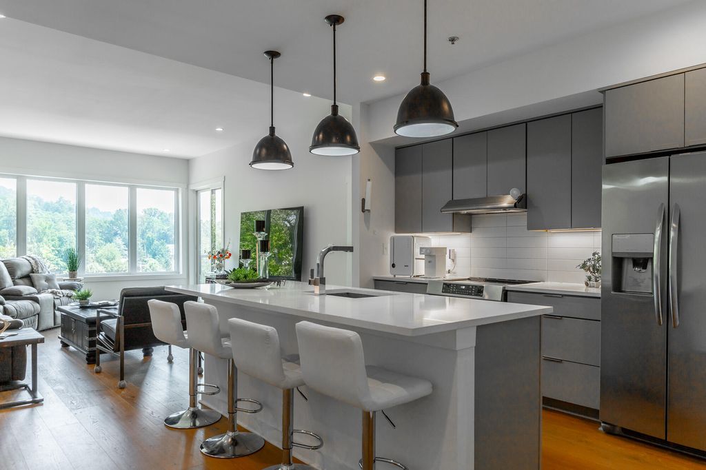 Welcome home to The Fairpoint, where modern design meets ultimate luxury and convenience. A masterpiece with unmatched views. This condo boasts top-of-line features throughout. High on a hilltop this unique location affords great views from every room plus a fantastic community rooftop deck which offers the perfect spot to relax or entertain and overlooking all of the city and mountains, equipped with comfortable seating and a built in outdoor grilling station. Walking distance to many restaurants, parks and shopping. This one level, 2 bedroom, 2 bath unit that boasts casement windows, engineered hardwoods and tile, 10' ceilings, s/s appliances, quarts counter tops, large laundry room, open spaces with great floor plan, private balcony with great views. From living room you will enjoy mountain scenery. The kitchen boasts a level center island with pendant lighting. The master bedroom with great views, walk-in closet and primary bath with a dual vanity, separate tiled shower and water closet. The guest bedroom with full bathroom are on the opposite side of the master bedroom and great for home office. This condo includes two assigned parking spaces and guest parking space. The secure Call Box Entry system provides safety. Located in the heart of Northshore. Move-in ready home. A must see!