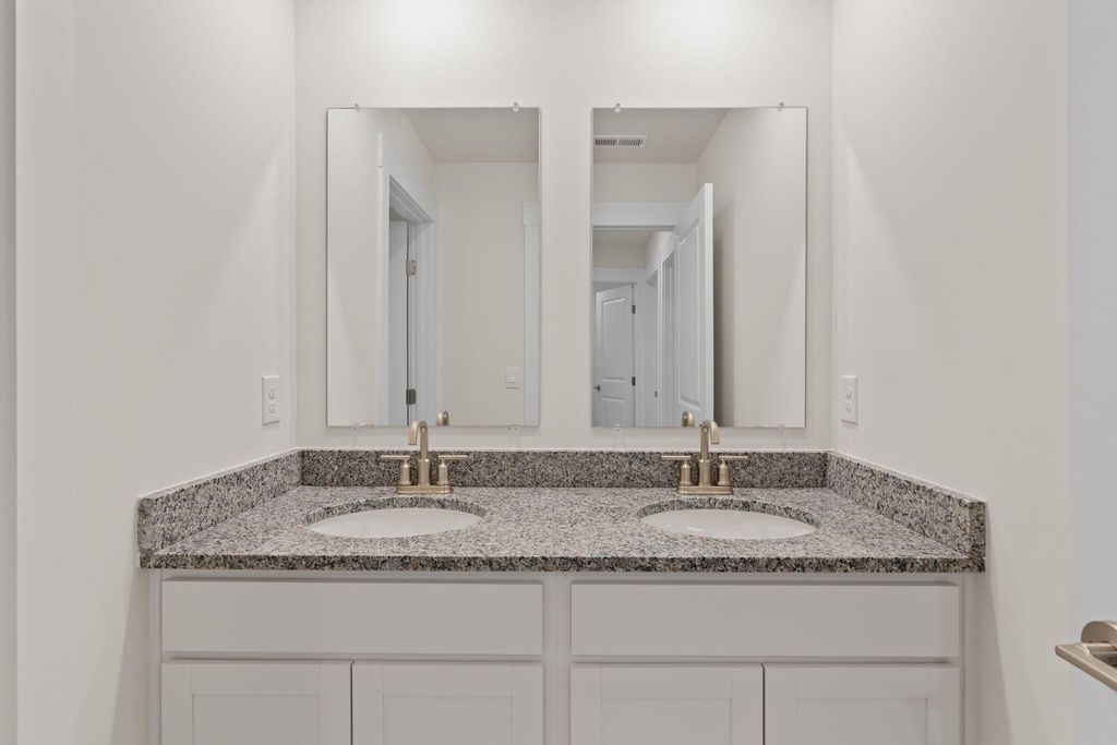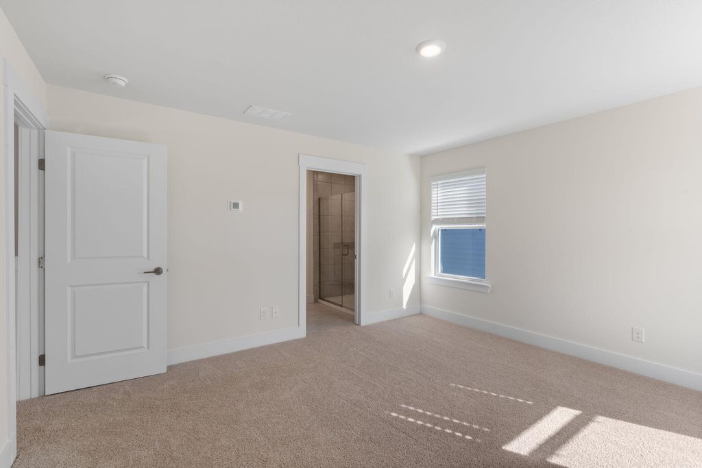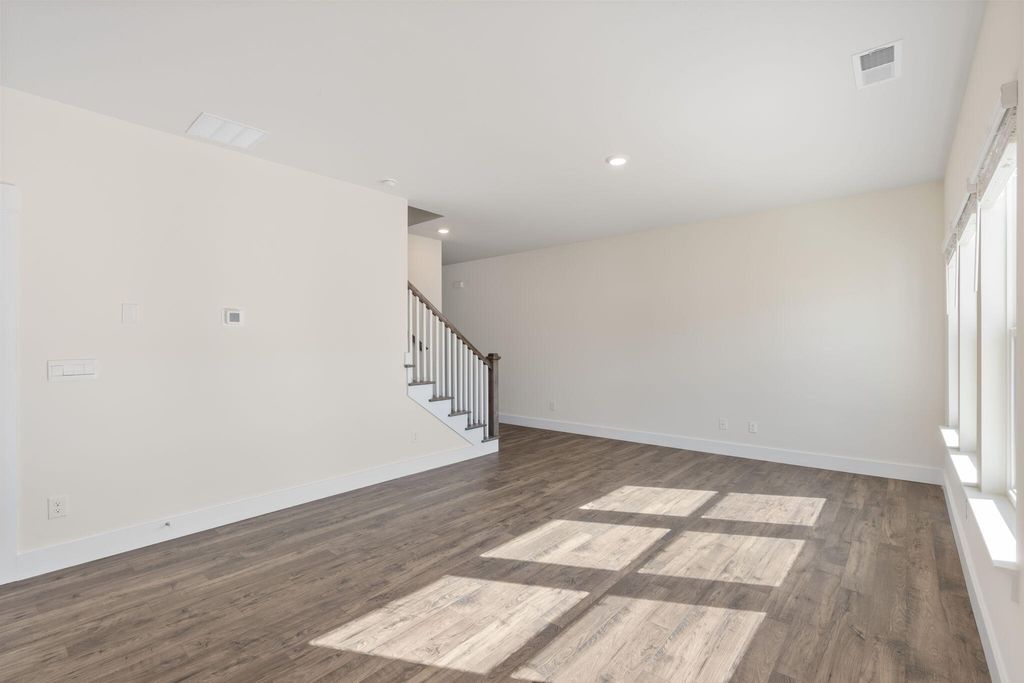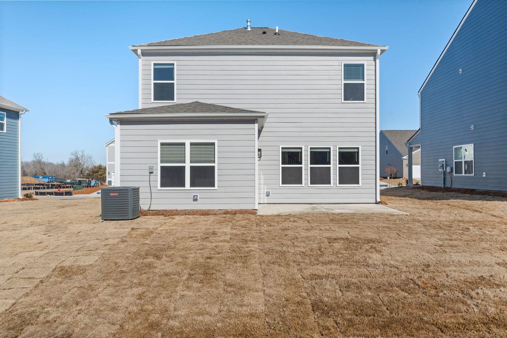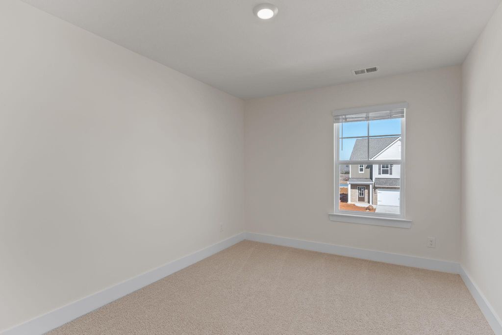 The Edmon plan available at The Cove in Thrasher Landing in Hixson, TN is a charming floorplan suited for any stage in life. The foyer opens to an expansive open concept living area and kitchen. The kitchen includes an island with countertop seating, a pantry, and a breakfast nook. The living and kitchen areas overlook an outdoor patio. Upstairs are four spacious bedrooms and two full bathrooms. The primary bedroom features a walk-in closet and en suite bathroom. The upstairs also features a laundry room.