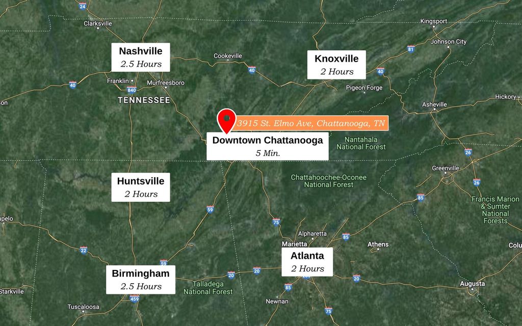 Unique RENTAL opportunity! At the base of Lookout Mountain, WALKABLE to St. Elmo dining, shopping, and attractions. This fully FURNISHED 1 bed, 1 bath walk-up apartment is perched above the beloved St. Elmo Mercantile. Adorned with vintage charm, step inside to find timeless character with hardwood floors, exposed brick accents, and elegant chandeliers that add a touch of grandeur to this cozy urban retreat. The thoughtfully designed layout includes a kitchen, dining nook, and HOME OFFICE space, ideal for remote work or creative pursuits. Enjoy the convenience of an in-unit washer and dryer and the comfort of stylish furnishings... MOVE IN READY! Take in the cityscape and Lookout Mountain VIEWS from your windows or explore the charm of St. Elmo. You're just steps from Velo Coffee Roasters, 1885 Grill, Clumpies Ice Cream, Mr T's Pizza, Little Coyote, and the Tennessee Riverwalk. Surrounded by Lookout Mountain's rich history and attractions including the Incline Railway, Ruby Falls, Rock City, and Point Park. Only 5 minutes to Publix, Chattanooga Christian School, I-24, and the scenic Downtown Chattanooga! Welcome to in-town living with charm, convenience, and natural beauty. (Pets on a case by case basis with non-refundable fees applicable.Tenant to verify square footage. Tenant is responsible to do their due diligence to verify that all information is correct, accurate and for obtaining any and all restrictions for the property deemed important to Tenant.)