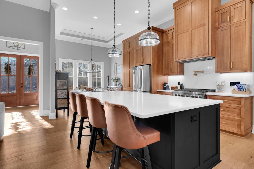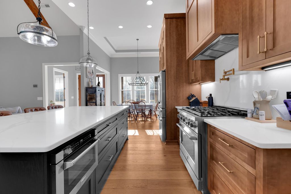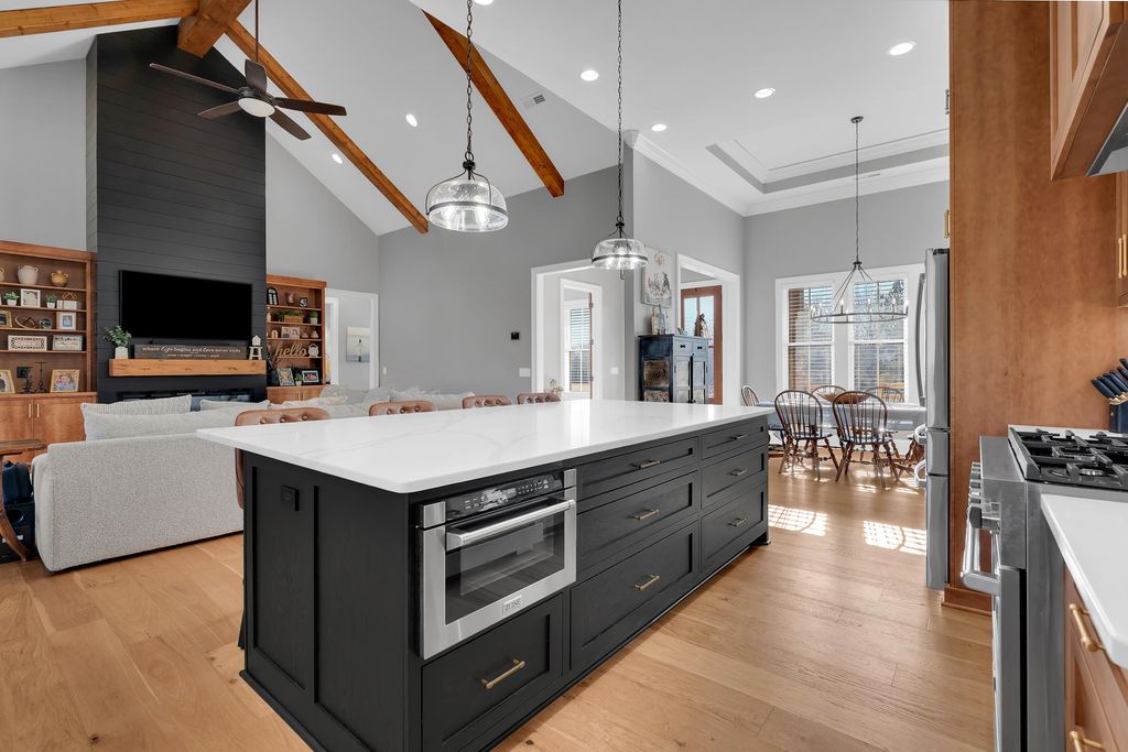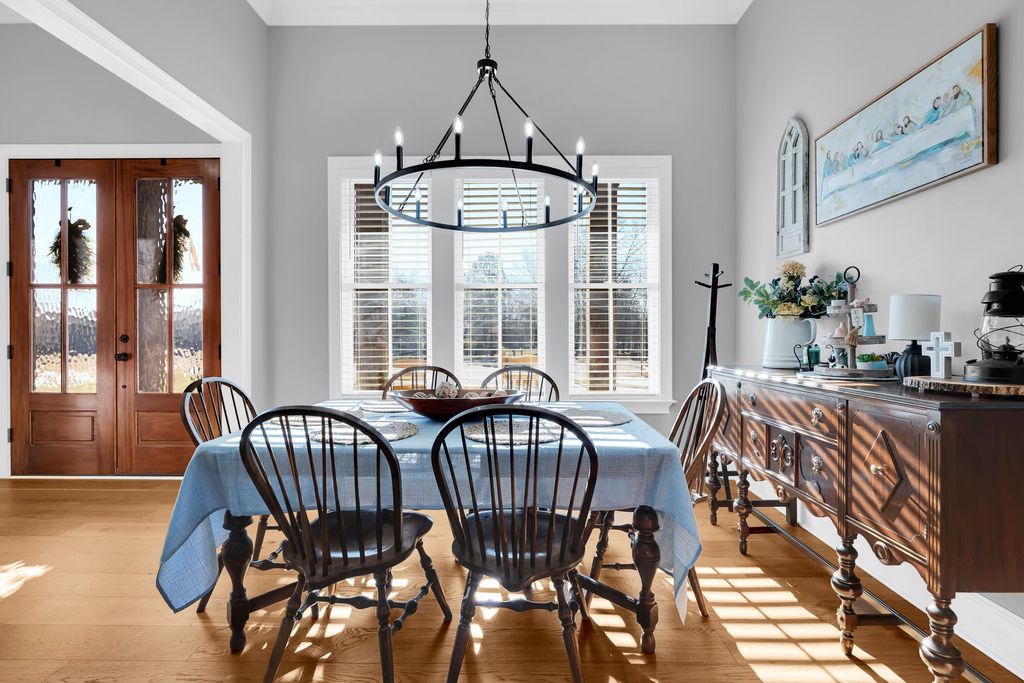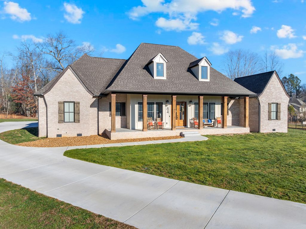 Welcome to this immaculate, custom-built home in the highly sought after Macon Manor neighborhood in Tullahoma. This home seamlessly blends stylish character and modern comfort. The covered front porch with stunning 12'' post invites you into this thoughtfully designed home. The open floor plan offers lots of natural lighting, 10' ceilings throughout the home and soaring, beamed ceilings in the great room and kitchen. The electric fireplace and surround with built-ins are the focal point of the great room. A gourmet chef's kitchen includes a huge walk-in butler's pantry, Zline six burner gas stove, stainless appliances, undercounter lighting, and a huge kitchen island with counter height seating. The main level split floor plan offers great space for each family member with four bedrooms and three full baths and built with a noise barrier insulation for sounding proofing the interior. The master suite is tucked away for privacy and offers a soaking tub, huge, tiled shower, double vanities and a dream of a walk-in closet. The huge, upstairs family room has a full bath, walk-in closet and would make a great second master. The laundry room is beautifully styled with tiled flooring, lots of cabinets, laundry sink and hanging rack. Organization is fun with the beautiful mudroom 'drop zone', a large storage room and closet and three car garage. Upgrades (for now and future) are - wired internet throughout, ethernet wired for cameras, wiring in place for a car charger, switch and wiring in place for a generator, and wiring in place for a pool and pool house. Enjoy the covered, private back porch for family time, football time or watching the deer gently graze at dusk. Welcome home to cozy, comfort and luxury living!