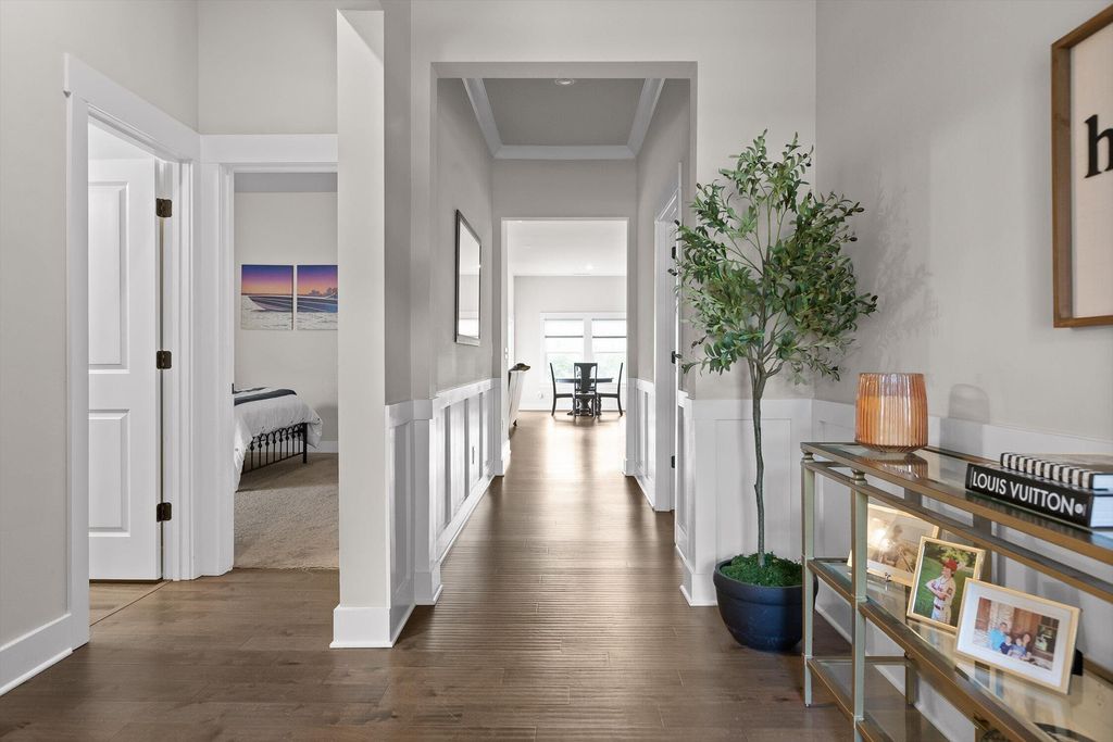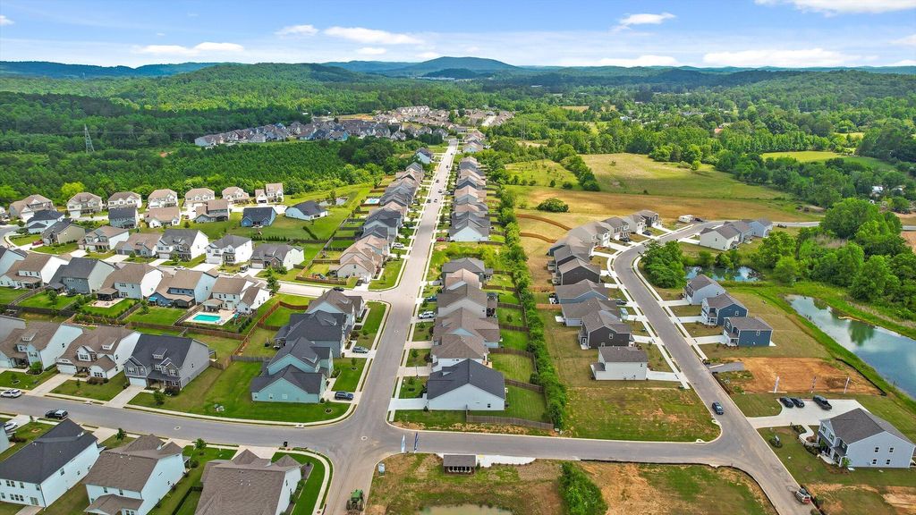 Welcome to 10784 Prairie Lake Drive, a beautiful home in Apison's sought-after Prairie Pass community. This residence sits on a spacious corner lot and offers scenic views of the rolling hills beyond, delivering a sense of serenity right from your doorstep. A charming curb appeal greets you with its low-maintenance landscaping, creating an inviting entry into the home. Step inside to discover an open floorplan with high ceilings and chair rail molding that enhances the sense of space and light. The living room features a cozy fireplace, perfect for relaxing evenings, while large windows frame picturesque views of the hills. The gourmet kitchen is a showstopper, featuring striking gray cabinetry with brushed gold hardware, granite countertops, stainless steel appliances, a corner pantry, and a generous island with bar seating. This space is both stylish and functional, designed for the modern chef and everyday living alike. The dining area offers direct access to the covered back patio, perfect for entertaining or simply enjoying a morning coffee in the fresh air. Retreat to the spacious primary bedroom, complete with a tray ceiling and an en suite that boasts a double vanity, an oversized walk-in sport shower with a shower seat, and an expansive walk-in closet. The additional bedrooms are generously sized and filled with natural light, sharing a well-appointed hallway bathroom with a double vanity and a tub/shower combo, ideal for guests. The home also features a practical laundry mudroom with a coat rack and cubbies for shoes and accessories, adding convenience to daily routines. Step outside to a fully fenced backyard with lush grass, a perfect haven for pets, gardening, or simply relaxing in your private backyard. The Prairie Pass community features a pool, clubhouse, pond, and sidewalks, offering residents a wonderful place to relax, socialize, and enjoy the outdoors. Don't miss your chance to experience this exceptional home. Located just a short drive from Ooltewah and East Brainerd shopping, dining, and amenities. Contact us today to schedule a showing. Local lenders are preferred!