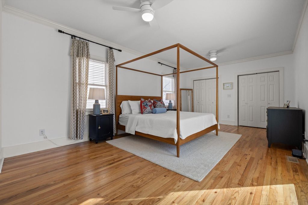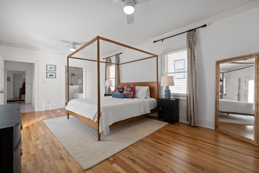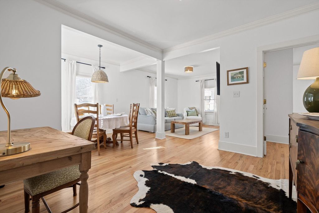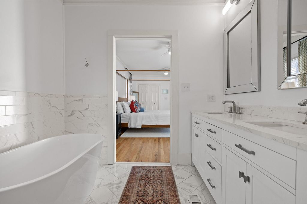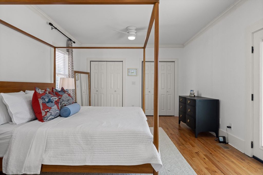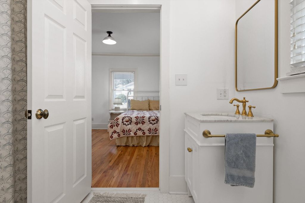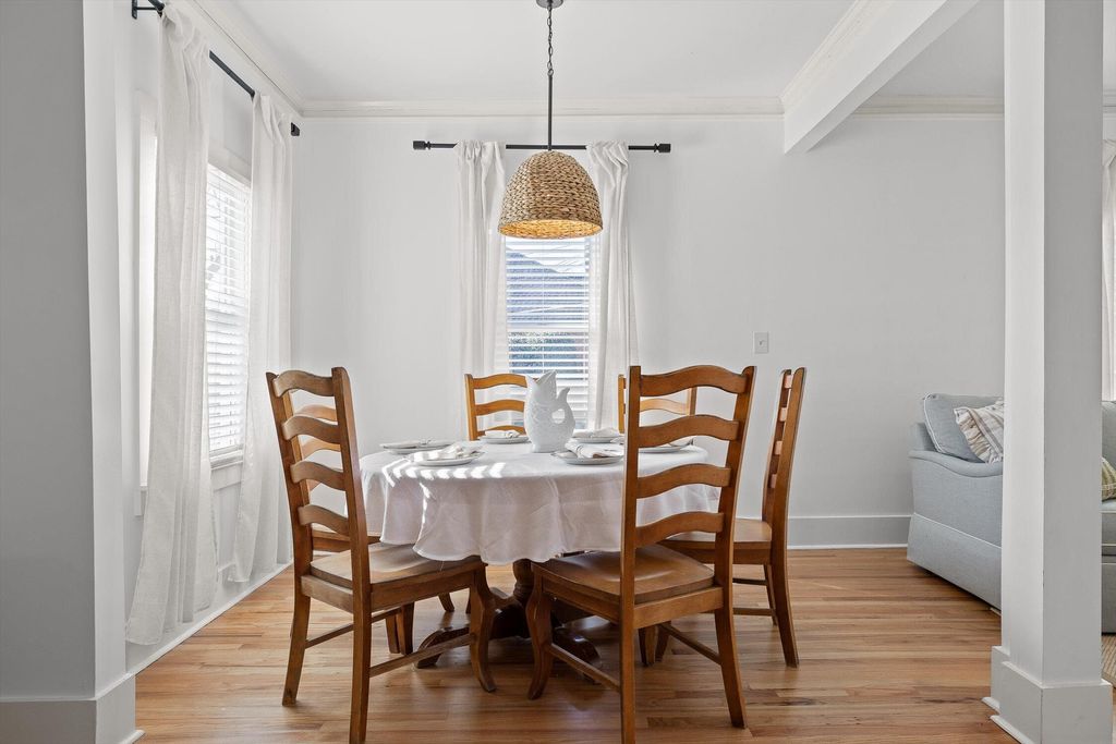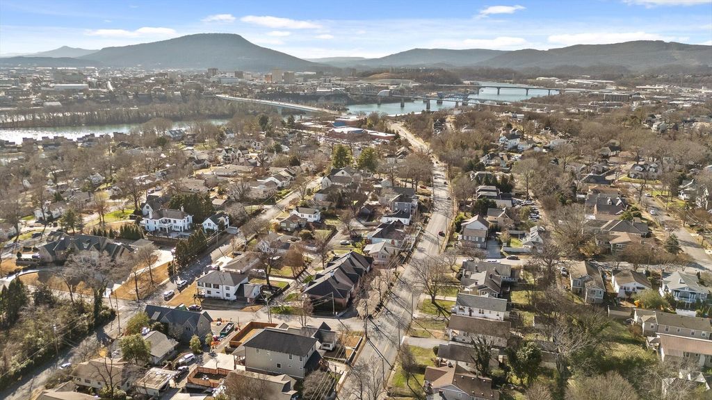 Welcome home to 612 Barton Ave, a gorgeous 1920s single level bungalow full of original charm and thoughtful modern updates, perfectly located on a corner lot in the heart of North Chattanooga. From the moment you arrive, the inviting covered front porch and beautiful Hardie siding set the tone for a home that feels both welcoming and timeless. This beautifully updated 2 bedroom, 2 bath cottage features hardwood floors and crown molding throughout, a fenced backyard, off street parking, and a utility garage with a new keypad. You will love the recent outdoor upgrades, including new sod, a sprinkler system, backyard fencing, gutters with gutter guards for easy care, a retaining wall with steps, and backyard access to a Trex deck that is perfect for relaxing or hosting friends and family. Inside, the living and dining areas flow easily together, creating a comfortable space for everyday living and entertaining. The kitchen opens to the dining area and features granite countertops, a stainless farmhouse sink, and stainless LG ThinQ smart appliances. The primary bedroom is tucked away at the back of the home and offers two closets, French doors leading to the side deck, and a spa like ensuite bath with dual sink quartz vanities, a freestanding soaking tub, a separate tiled shower with glass surround, and a laundry area with cabinet storage. The guest bedroom is located at the front of the home and includes its own private bath with separate vanities and a tub and shower combination with subway tile surround. Just a few blocks from Girls Preparatory School and within easy walking distance to Coolidge Park, Riverview as well as the shops and restaurants of North Shore and Riverview, you will love how connected this home feels to everything Chattanooga has to offer. This is a wonderful opportunity to enjoy life in one of the city's most loved neighborhoods. Buyer to verify all info.