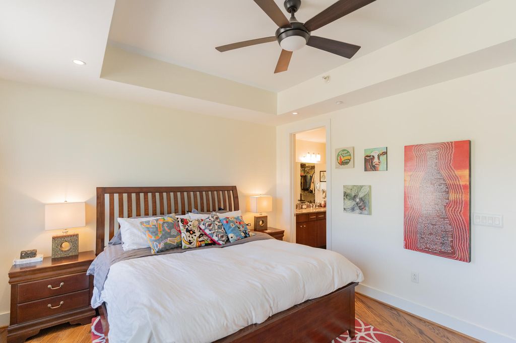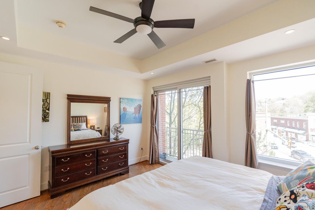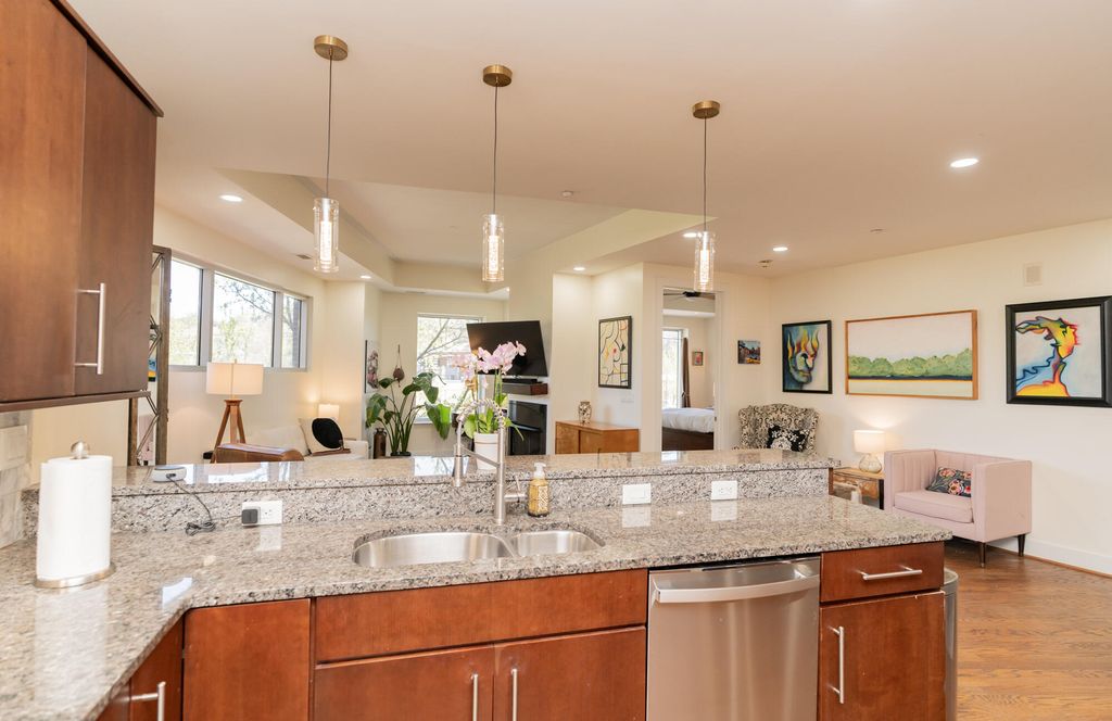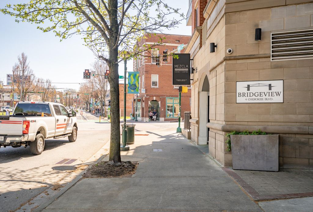 This beautiful condo is priced to sell and motivated sellers! Features a wide-open floorplan with all new lighting, tall ceilings, oversized windows, neutral paint colors and hardwood floors throughout. The kitchen is open to the dining area and has granite countertops, undermount cabinet lighting, stainless appliances, tile backsplash, new pendent lights, breakfast bar for extra seating and entertaining. The living area has a tray ceiling with gas log fireplace with wooden mantle and granite surround with a convenient office nook. The primary bedroom has a sliding glass door to a balconette, tray ceiling, walk-in closet and a large, tiled shower with a new double shower head and a double sink granite topped vanity. The second bedroom has a double closet and access to 2nd full bathroom with tiled shower and granite top vanity. Separate laundry room, entryway, pantry and a Trane HVAC installed in 2022 are extra bonuses. The building's roof was just installed in 2025. The unit includes 2 secured, covered and gated parking #36 and #37 with access to store kayaks and paddleboards. The HOA covers water, sewer, gas, covered/gated parking, concierge service, garbage pick-up, 24 hour security cameras and maintenance of common areas. Building is approved for a STR. Enjoy instant outdoor access to the Tennessee River, Coolidge and Renaissance parks, the River Walk, loads of restaurants, cafes, shops and 2 grocery stores. Don't let this great opportunity pass you by!