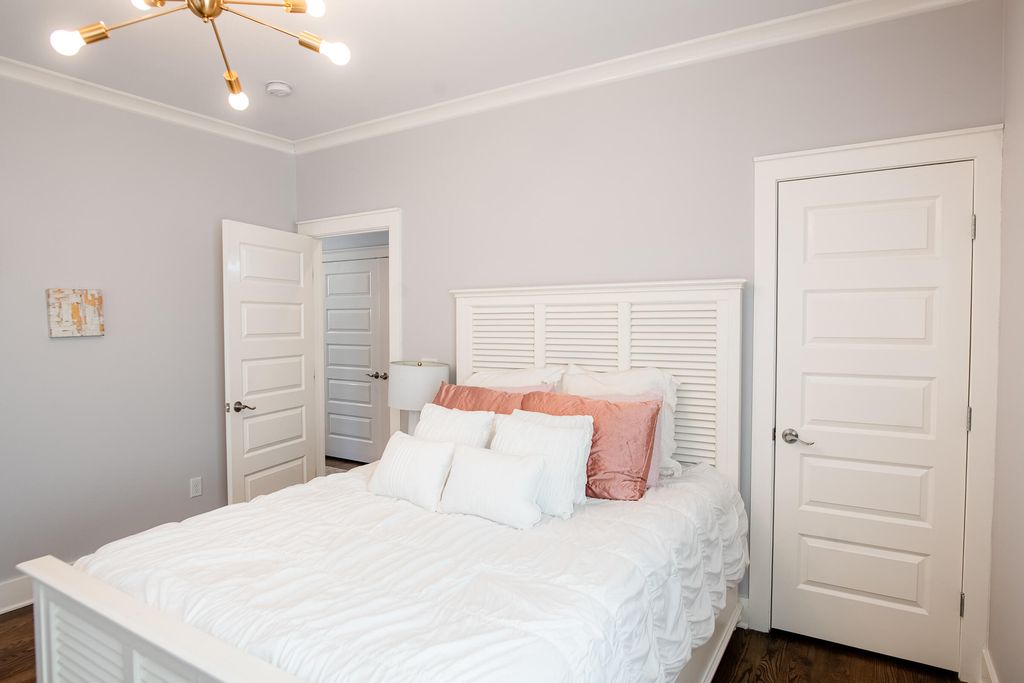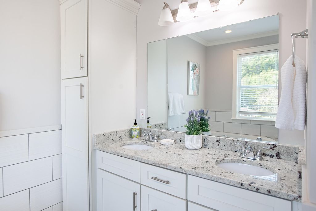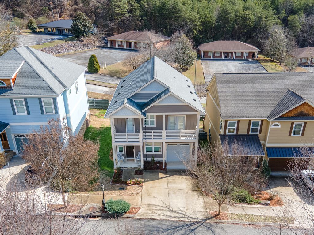 This thoughtfully designed home offers a comfortable blend of functionality and style across two well-planned levels. Located in a desirable Chattanooga neighborhood, this home offers comfort, thoughtful design, and everyday convenience. Main Level: Hardwood and ceramic tile floors flow throughout the main living spaces. A welcoming front room"”ideal as a sitting room or home office"”features a ceiling fan and flexible layout. The open-concept kitchen, living, and dining area is perfect for everyday living and entertaining. The kitchen is equipped with a gas range and hood, dishwasher, pantry, farmhouse sink, granite countertops, and a center island. A convenient powder room and a storage closet tucked beneath the stairway add to the home's practicality. Step outside to enjoy the deck, extending your living space outdoors. Direct access to the one-car garage with opener is conveniently located off the kitchen. Second Level: The upper level continues with hardwood and ceramic tile flooring. The spacious primary bedroom features a walk-in closet and an ensuite bath with a separate shower, soaking tub, and vanity. Two additional bedrooms open onto a private deck, including a nursery with its own walk-in closet. A full hall bath, laundry closet, and linen closet complete the second floor. Additional Notes: Certain items belong to the tenant and do not convey, including the dining area light fixture, baby's room light fixture, and drapes in the primary bedroom.