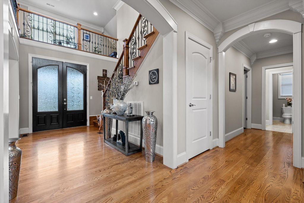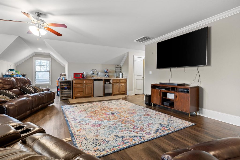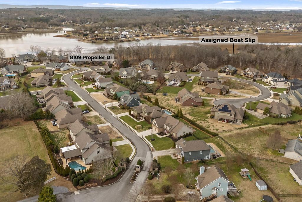 Welcome to 8109 Propeller Dr., a beautifully appointed six-bedroom, five-and-a-half-bath home located in the gated Georgetown Bay community on Savannah Bay. Set on just under half an acre, this 4,204-square-foot home offers generous living space and desirable water access with a private assigned boat slip across the street, two community docks, a boat ramp, and boat storage, all within a sidewalk-lined neighborhood. Inside, the living room makes an immediate impression with soaring ceilings centered around a fireplace, flanked by built-in shelving on either side and enhanced by double windows that flood the space with natural light. The spacious kitchen is well equipped with a built-in stovetop, wall double oven, wall microwave, and abundant cabinetry, opening to a breakfast nook with bay windows overlooking the backyard and a separate dining room for formal gatherings. A main-level laundry room with a sink and built-in cabinetry adds convenience, with an adjacent three-car garage providing ample space for vehicles and storage. The main-level primary suite serves as a private retreat featuring an oversized double shower with dual shower heads and a handheld option, a soaking tub, separate vanities with space for a vanity seat, and a large walk-in closet with built-in shelving. Upstairs, five additional bedrooms share three full baths, along with a spacious bonus room that includes a fireplace and kitchenette with a dishwasher and ice maker. An office area with built-in shelving and cabinetry and an additional loft-style living space provide flexibility for work, relaxation, or entertaining. Outdoor living can be enjoyed from the back porch, surrounded by privacy trees and connected by a sidewalk leading through the community, completing this inviting home in the sought-after Georgetown Bay neighborhood.