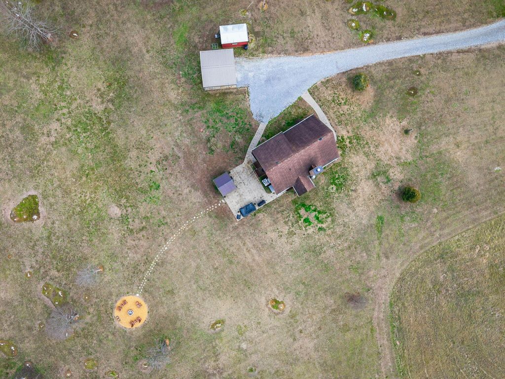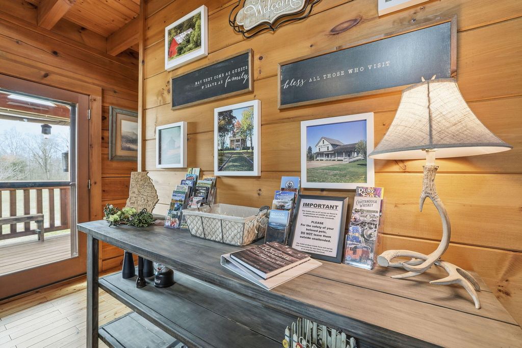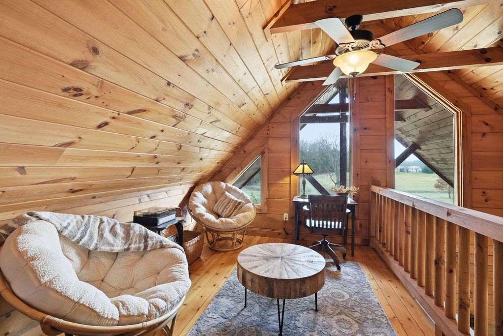 Set on 27 private acres with half a mile of creek frontage, this fully furnished short-term rental property offers a rare combination of lifestyle appeal and income potential. The log cabin blends rustic character with modern comfort, featuring vaulted wood ceilings, exposed beams, an open-concept living and kitchen area, and a versatile loft space ideal for additional sleeping or lounging. The home also includes floored attic storage with two 12x4 storage rooms, providing valuable owner storage for STR operations. Outdoor amenities elevate the guest experience and support strong rental demand. A 30x30 patio with gas BBQ creates an ideal gathering space, while a stone walkway leads to a dedicated fire pit area for evenings outdoors. Guests can enjoy the on-site disc golf course, explore the expansive acreage, and relax along the creek, making the property well suited for weekend getaways, group stays, and experience-driven rentals. The land includes two additional building sites, offering significant upside for investors. These sites present opportunities for future cabins, glamping units, or facilities that could support boarding for horses, allowing guests to travel with their animals or enjoy equestrian experiences as part of their stay. This added flexibility creates multiple paths to expand revenue streams while enhancing the property's appeal to a broader STR audience. Offered fully furnished, this is a turnkey opportunity for investors seeking a vacation rental with strong experiential appeal, expansion potential, and long-term versatility. Whether operated as a single high-performing retreat or developed into a multi-unit destination property, this acreage provides the space and features to support both immediate income and future growth.