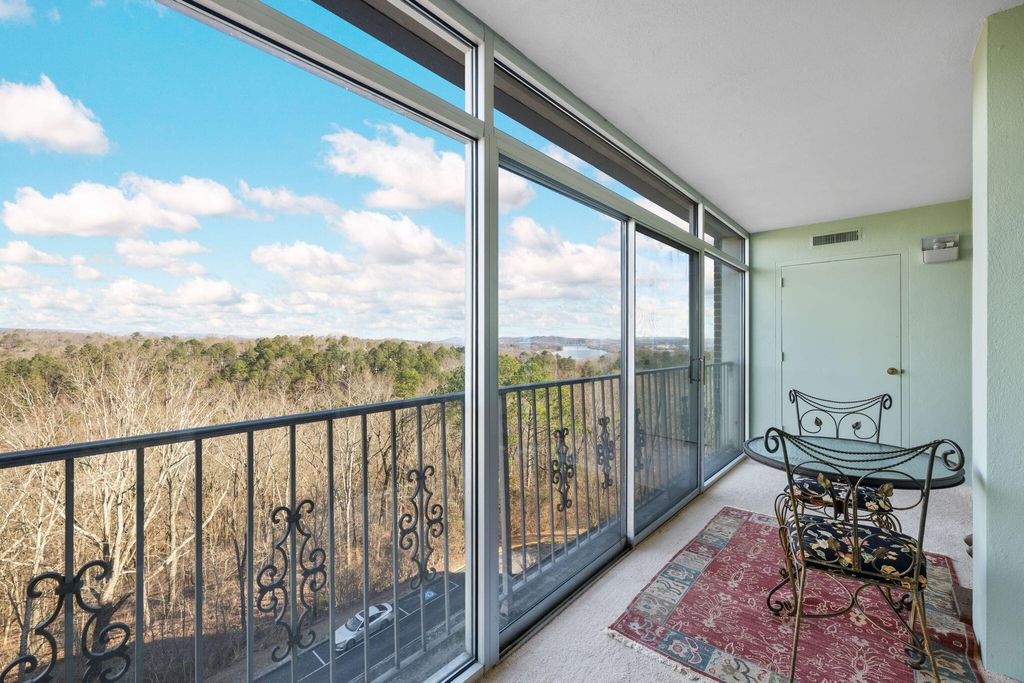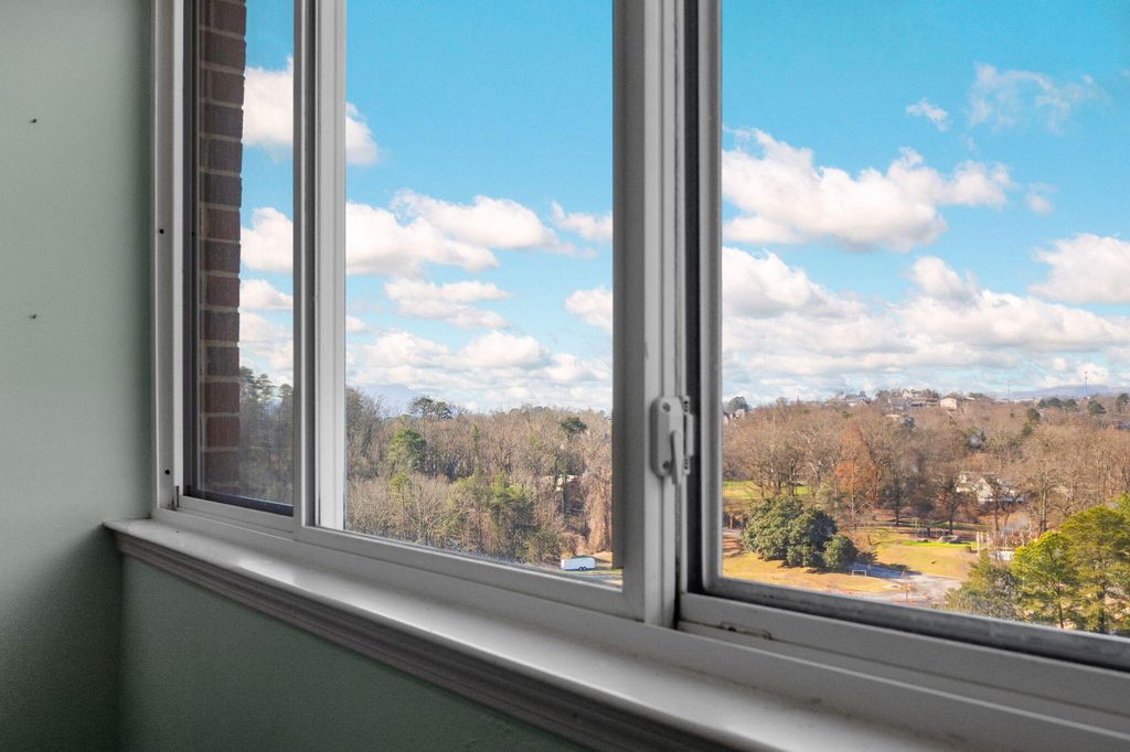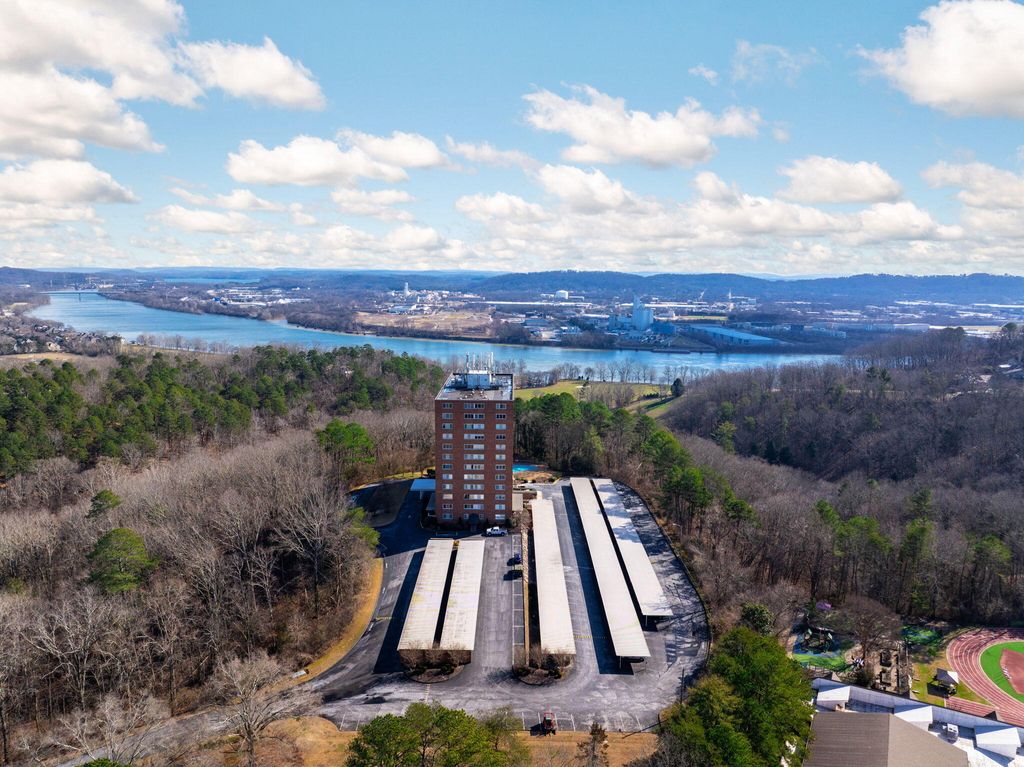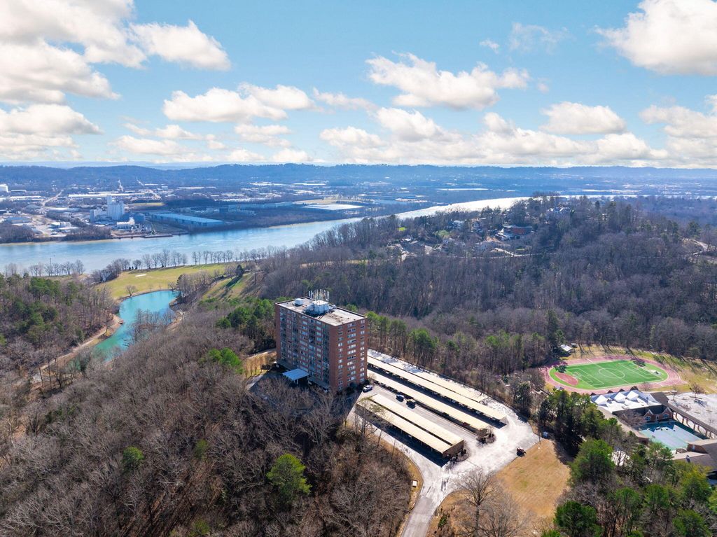 Take in breathtaking views from this corner unit overlooking the Tennessee River, Signal Mountain, Lookout Mountain, and the Cumberland Plateau. Wake up to stunning sunrises over the river from your private sunroom or relax in bed while watching thunderstorms roll across the mountains. This beautifully updated home features granite countertops, stainless steel appliances, and energy-efficient vinyl windows with screens to welcome fresh mountain breezes. Ample storage abounds with tall kitchen cabinetry, spacious closets, and a dedicated storage unit in the building's basement. The HOA covers water, sewer, trash removal, monthly pest control, exterior window washing, security, and full access to community amenities including a swimming pool, fitness center, library, and large meeting room with kitchen offering regular activities and events. Tucked away on a quiet, single-entrance street yet just five minutes from downtown Chattanooga, this low-maintenance lifestyle opportunity won't last long. Schedule your private showing today.