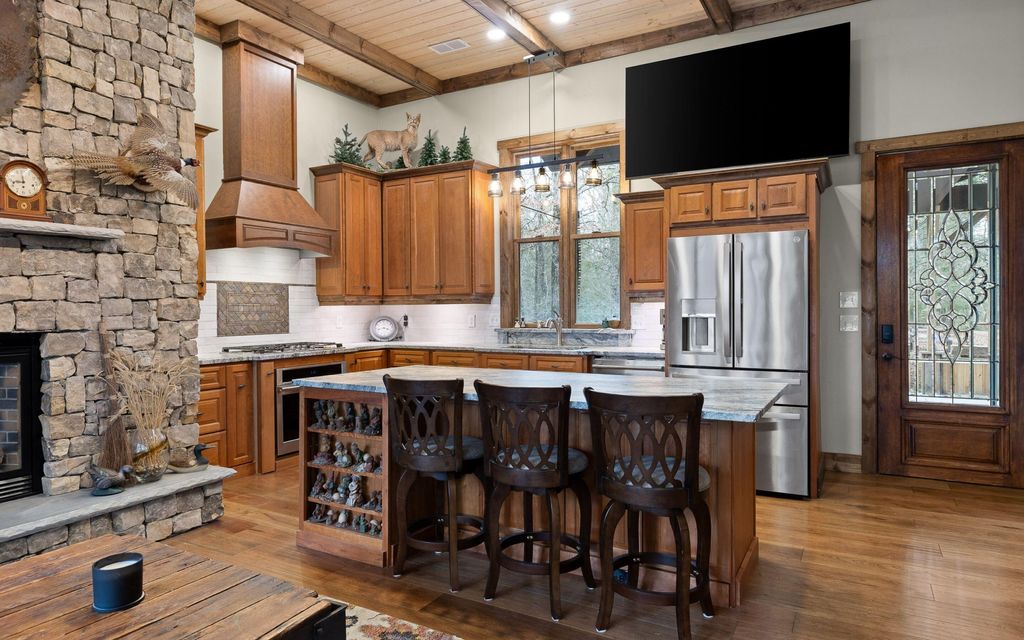 WATCH VIDEO: https://youtu.be/QLrhq7dw4HQ - LAKE HOME on 5+ ACRES atop Mowbray Mountain! 4 BED, 4.5 BATH home with private living suite combines indoor character with outdoor living! Inside, find hardwood floors, Andersen windows, and rustic charm! Open concept living area includes a kitchen with stainless steel appliances, handcrafted cherry cabinetry, granite countertops, and a large island. The main and lower level living areas are anchored by stacked stone natural gas fireplaces, with large window VIEWS of the 9+/- acre STOCKED PRIVATE LAKE, a tranquil backdrop for both summer fun and winter reflection. The main level also includes the primary ensuite, additional bedroom, bathroom, laundry, and access to the COVERED PORCH. Upstairs, find a private living area, perfect for a HOME OFFICE or bedroom. Downstairs, a PRIVATE SUITE that includes a living room with fireplace, full kitchen, laundry room, bath, back deck, and separate entrance - perfect for entertaining or multi-generational living. Features include on-demand water heater, spray-foam insulation, efficient mini-split heating and air units, low maintenance textured metal siding, and ample walk-out storage. Outdoors, functional circular driveway, covered front porch, and covered parking. Enjoy peaceful seclusion on 5.79+/- wooded acres - your private retreat for LAKE LIFE! Located in the EPB fiber optics service area, within HAMILTON COUNTY schools. 10 minutes to Soddy Daisy conveniences and 30 minutes to downtown Chattanooga! Welcome home to your lakeside serenity, where rustic charm meets open-air living. (Buyer to verify square footage. Some images may be virtually staged. Buyer is responsible for doing their due diligence to verify that all information is correct, accurate, and for obtaining any and all restrictions for the property deemed important to Buyer. Home functions as a 4 bedroom home. Septic system permitted for 3 bedrooms.)