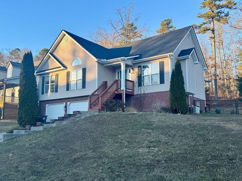 Welcome home to 7564 Passport Dr. here in beautiful Ooltewah, TN. Located in the Hamilton on Hunter subdivision off Hunter Road, this home sits in a gorgeous neighborhood in the heart of Ooltewah. Hunter Middle school is just a minute or two away from the subdivision entrance, putting the home in very close proximity to it! Upon arriving at the home, the curb appeal is immediately evident. The home sits on a sloping lot with tasteful landscaping lining the path/stairs up to the front door. After heading inside, you are warmly greeted by lofted ceilings and an open-concept kitchen and living area. The living room boasts a gorgeous fireplace (not to be used), with ample natural light pouring in through the large windows. The kitchen features all stainless steel appliances, with a dishwasher and mounted microwave included. Down the hall are the home's 3 bedrooms, with the master bedroom and bath off at the end to the right, and the other 2 bathrooms and full bathroom across it. The master features 2 large closets, a beautiful tray ceiling, and a large en-suite full bathroom. Downstairs is the large 2-car garage access, as well as a massive bonus room that offers endless potential for layout and use. The home also boasts a large wooden back deck with access provided via the kitchen/dining room exterior door. Don't miss your chance to see this home! Schedule your own viewing appointment today: