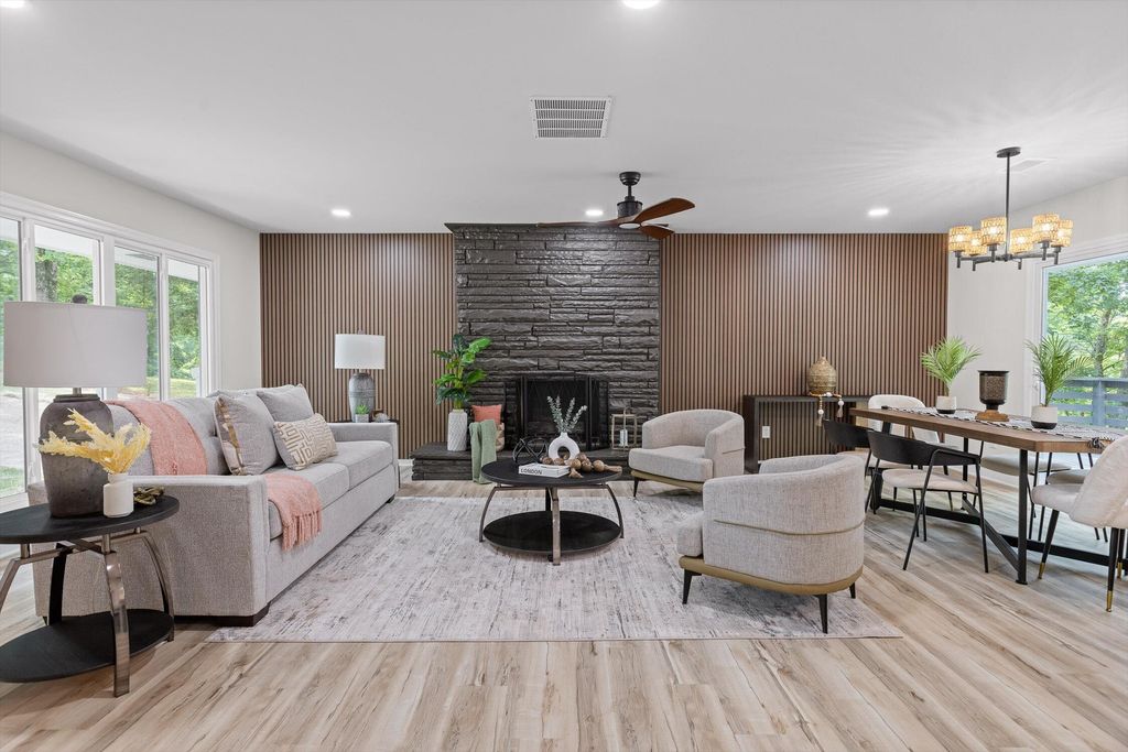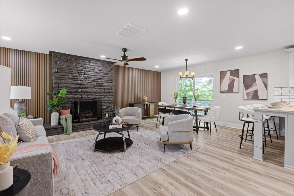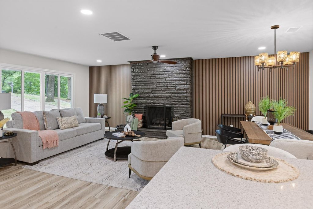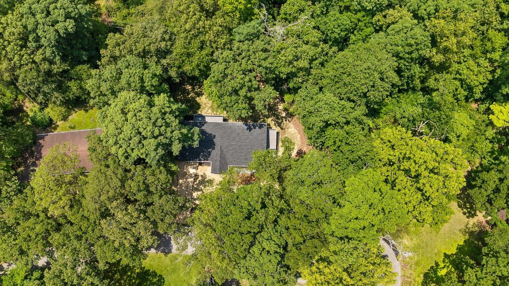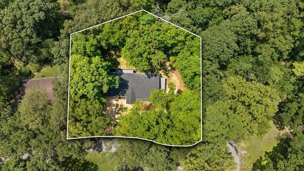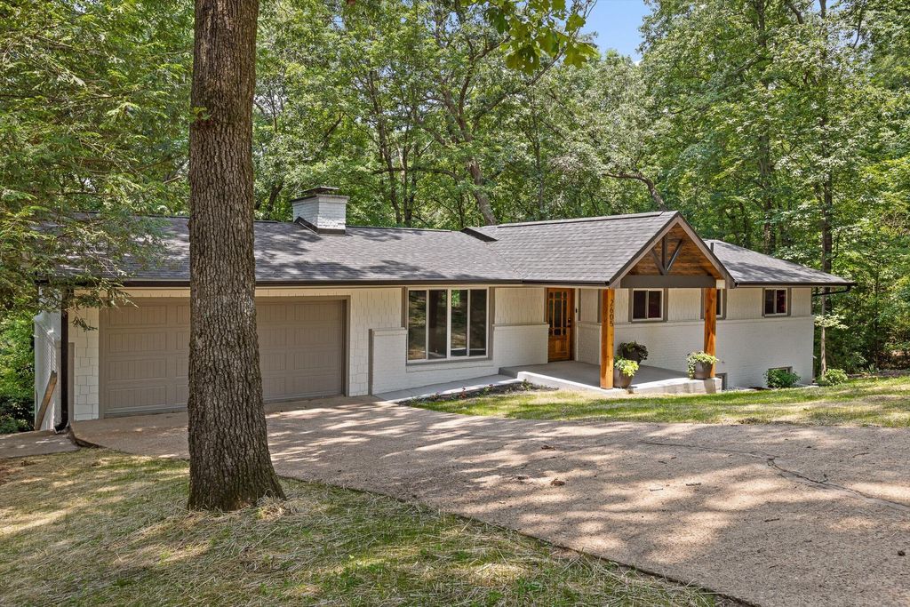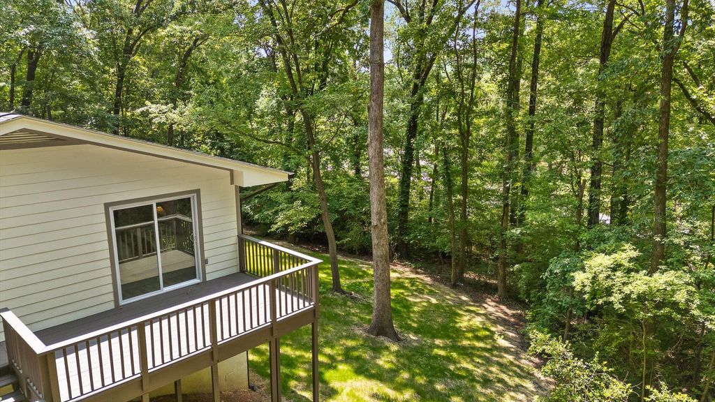 Quietly set on a wooded 0.6-acre lot in Dallas Heights, this modernized home offers privacy, style, and an exceptional location just minutes from downtown Chattanooga, the North Shore, and Red Bank. The setting feels tucked away, with mature trees and natural light throughout, while everyday conveniences remain close at hand. The interior has been thoughtfully refreshed from top to bottom, with nearly every visible surface updated. The main level includes two bedrooms, highlighted by a private primary suite that opens directly to a spacious deck surrounded by greenery. Living and entertaining spaces flow easily, anchored by a cozy fireplace and a redesigned kitchen featuring new cabinetry, quartz countertops, stainless steel appliances, and contemporary lighting. Bathrooms throughout the home have been tastefully updated with tile showers, new tubs, modern vanities, and clean, timeless finishes. Additional improvements include new sheetrock, interior and exterior paint, updated flooring, energy-efficient windows and doors, Hardie-style siding, and a new roof... creating a home that feels fresh, current, and move-in ready. The finished basement adds flexible living space with a large den, second fireplace, full bath, and private exterior entrance... ideal for guests, a home office, or additional living needs. A former carport has been converted into a true two-car garage, adding everyday convenience and storage. A tongue-and-groove open-gable front porch and fresh landscaping complete the picture, while updated lighting and an upgraded electrical panel add confidence and reliability. Stylish, private, and well-located, this Dallas Heights home delivers modern comfort just minutes from the heart of Chattanooga.