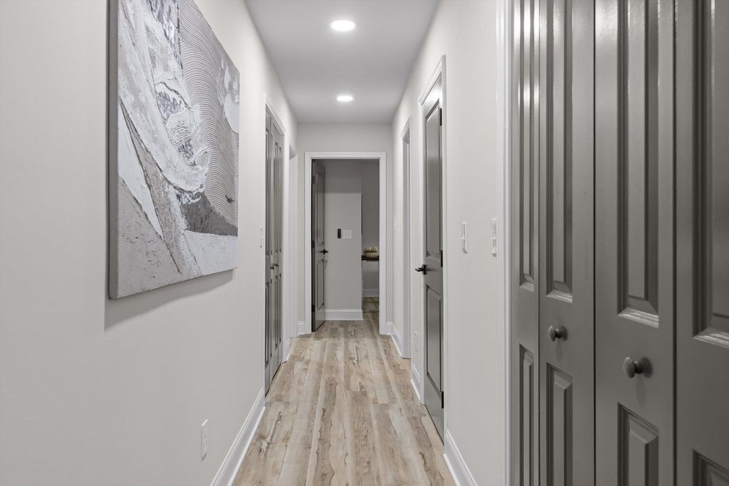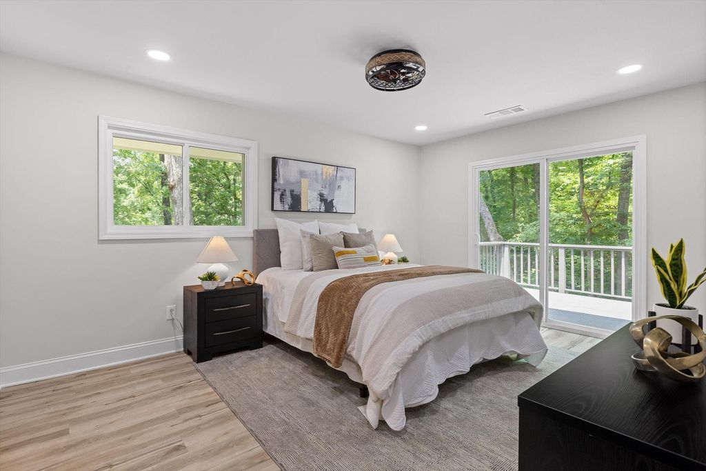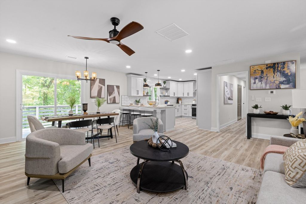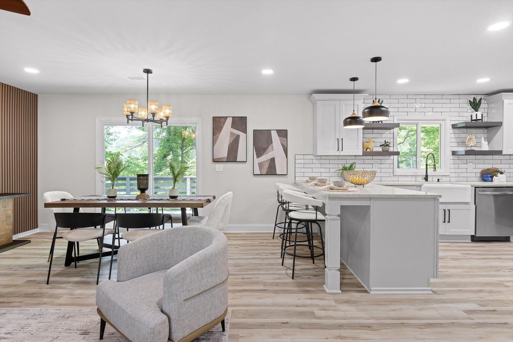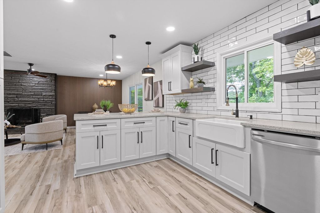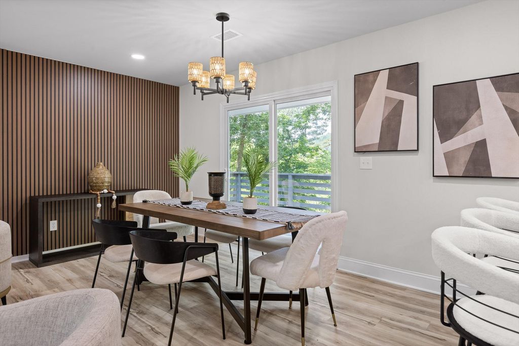 Quietly set on a wooded 0.6-acre lot in Dallas Heights, this modernized home offers privacy, style, and an exceptional location just minutes from downtown Chattanooga, the North Shore, and Red Bank. The setting feels tucked away, with mature trees and natural light throughout, while everyday conveniences remain close at hand. The interior has been thoughtfully refreshed from top to bottom, with nearly every visible surface updated. The main level includes two bedrooms, highlighted by a private primary suite that opens directly to a spacious deck surrounded by greenery. Living and entertaining spaces flow easily, anchored by a cozy fireplace and a redesigned kitchen featuring new cabinetry, quartz countertops, stainless steel appliances, and contemporary lighting. Bathrooms throughout the home have been tastefully updated with tile showers, new tubs, modern vanities, and clean, timeless finishes. Additional improvements include new sheetrock, interior and exterior paint, updated flooring, energy-efficient windows and doors, Hardie-style siding, and a new roof... creating a home that feels fresh, current, and move-in ready. The finished basement adds flexible living space with a large den, second fireplace, full bath, and private exterior entrance... ideal for guests, a home office, or additional living needs. A former carport has been converted into a true two-car garage, adding everyday convenience and storage. A tongue-and-groove open-gable front porch and fresh landscaping complete the picture, while updated lighting and an upgraded electrical panel add confidence and reliability. Stylish, private, and well-located, this Dallas Heights home delivers modern comfort just minutes from the heart of Chattanooga.