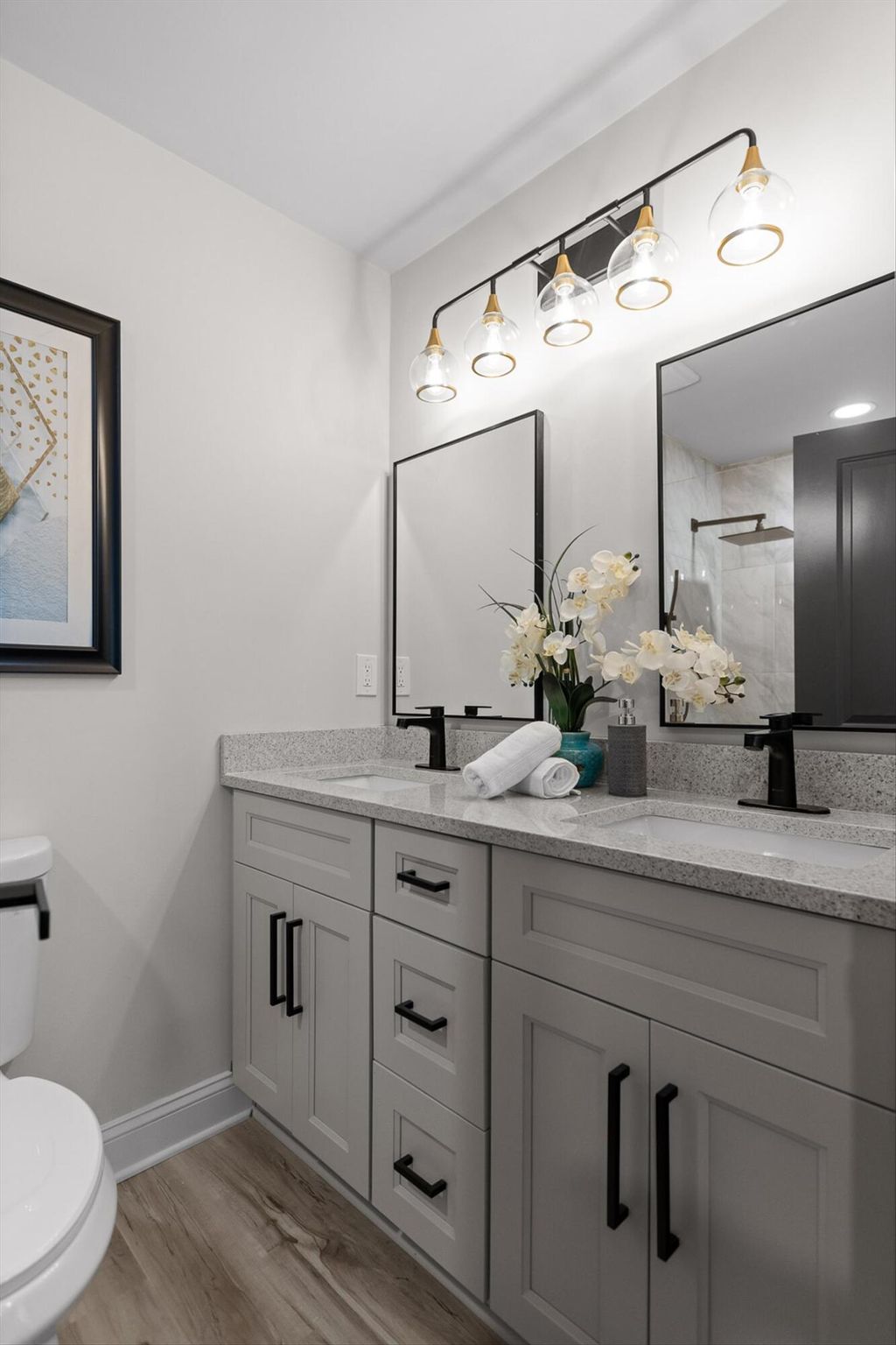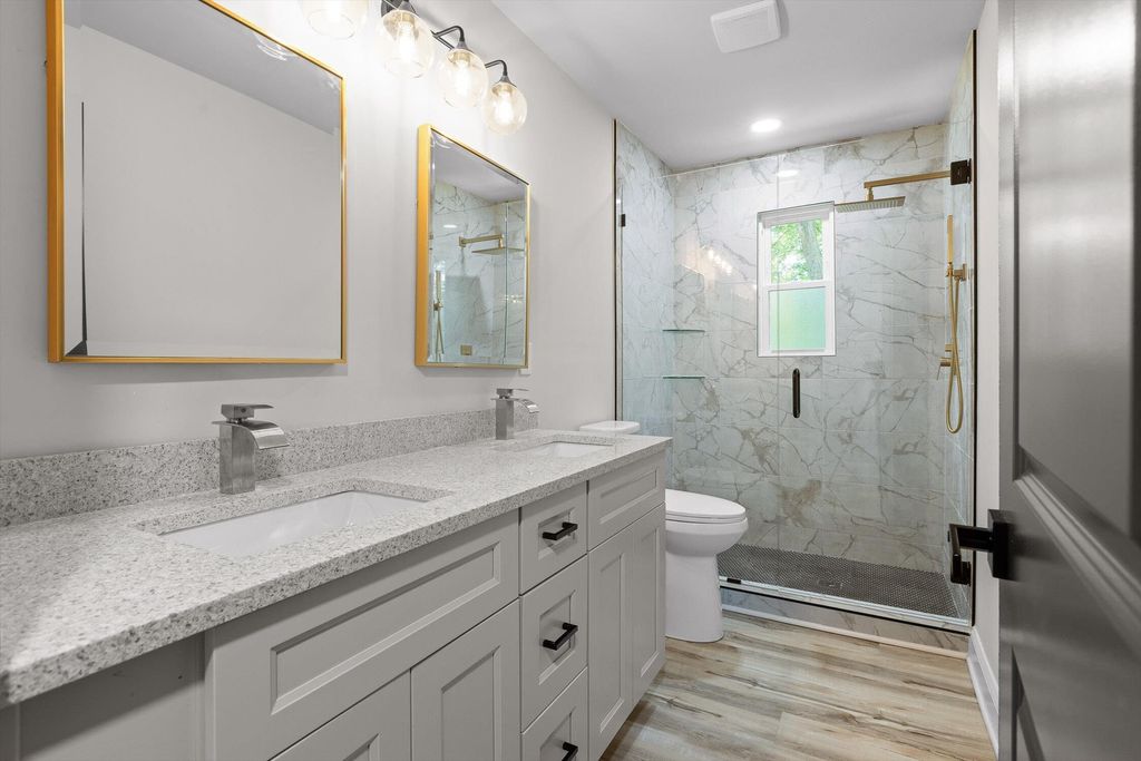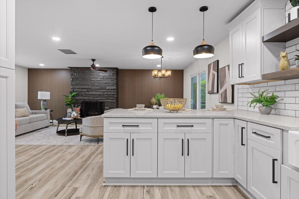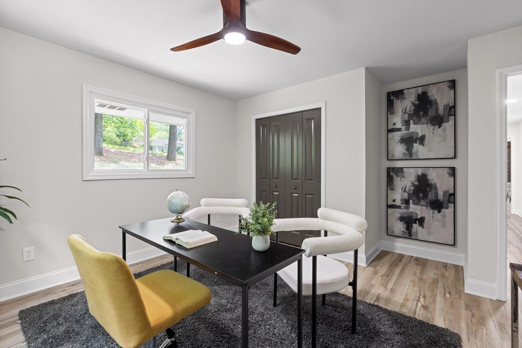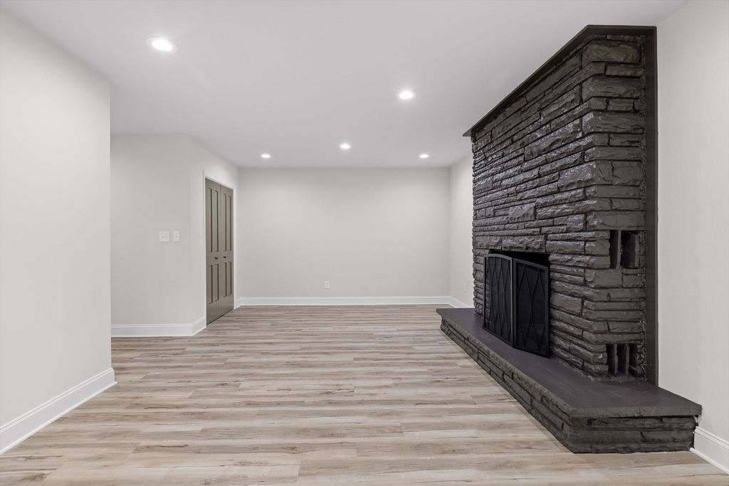 Quietly set on a wooded 0.6-acre lot in Dallas Heights, this modernized home offers privacy, style, and an exceptional location just minutes from downtown Chattanooga, the North Shore, and Red Bank. The setting feels tucked away, with mature trees and natural light throughout, while everyday conveniences remain close at hand. The interior has been thoughtfully refreshed from top to bottom, with nearly every visible surface updated. The main level includes two bedrooms, highlighted by a private primary suite that opens directly to a spacious deck surrounded by greenery. Living and entertaining spaces flow easily, anchored by a cozy fireplace and a redesigned kitchen featuring new cabinetry, quartz countertops, stainless steel appliances, and contemporary lighting. Bathrooms throughout the home have been tastefully updated with tile showers, new tubs, modern vanities, and clean, timeless finishes. Additional improvements include new sheetrock, interior and exterior paint, updated flooring, energy-efficient windows and doors, Hardie-style siding, and a new roof... creating a home that feels fresh, current, and move-in ready. The finished basement adds flexible living space with a large den, second fireplace, full bath, and private exterior entrance... ideal for guests, a home office, or additional living needs. A former carport has been converted into a true two-car garage, adding everyday convenience and storage. A tongue-and-groove open-gable front porch and fresh landscaping complete the picture, while updated lighting and an upgraded electrical panel add confidence and reliability. Stylish, private, and well-located, this Dallas Heights home delivers modern comfort just minutes from the heart of Chattanooga.