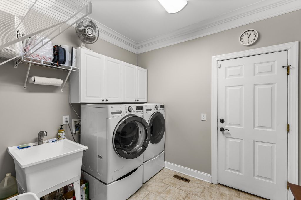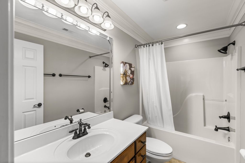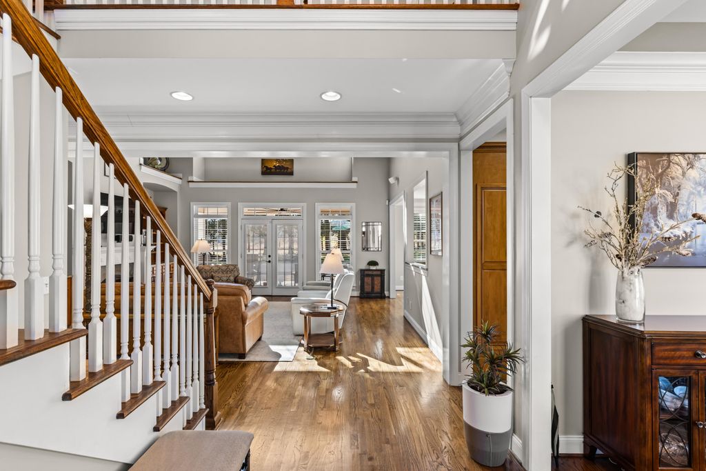 Attractive and meticulously maintained, this one-owner home offers an impressive array of thoughtful, homeowner-added upgrades that enhance comfort, efficiency, and convenience. Situated on a generous homesite that provides ample space and privacy, the well-built residence features a durable Hardiplank and stone exterior. A spacious covered back porch, complete with a stained v-groove ceiling, serves as an ideal outdoor retreat for relaxation and entertaining. Inside, the home exudes a warm and welcoming atmosphere, illuminated by abundant windows that invite natural light throughout. Hardwood floors grace the foyer, great room, dining room, and breakfast area, while the beautifully appointed kitchen showcases stunning slate tile flooring. Though constructed in 2006, the cabinetry and many finishes appear nearly new, a testament to the exceptional care given to this property. The practical, flowing floor plan includes 3 Bedrooms, 3.5 Baths, and a versatile Bonus Room. Key features include spacious closets, abundant cabinetry, and custom built-ins. The kitchen is equipped with premium conveniences such as a built-in refrigerator, range with induction cooktop, raised dishwasher, granite countertops, under-sink water filtration system, touch faucet, and pull-out shelf rollouts for optimal organization and functionality. For year-round comfort, the home boasts energy-efficient enhancements including additional attic insulation installed by Insulation Unlimited (a trusted local Chattanooga-area specialist), a mini-split unit in the primary bedroom for (additional) zoned climate control, and a supplemental 4-gallon hot water heater in the crawl space providing instant hot water at the kitchen sink. The crawl space is further protected with a sump pump, dehumidifier, and humidistat monitoring system for peace of mind. The main-level primary suite is generously sized, featuring hardwood flooring and patio door opening directly to the covered back porch. The primary bath includes a double-sink vanity, tiled shower, and private water closet. Upstairs, two additional bedrooms, two full baths, and the bonus room offer flexible space for family or guests. Additional homeowner upgrades add everyday value and security: a steel-lined safe room with a floor safe, entertainment sound system (speakers and amplifier), living room TV with pull-down feature, motion-detector lights at the front door and back porch, outdoor garage lights on a timer system, and a starter log set for the wood-burning fireplace (with two racks of seasoned firewood included). A never-used sprinkler system supports effortless landscaping maintenance. Lakeshore Cove is a private, gated community in the heart of Fort Oglethorpe, Georgia, with convenient access to Chattanooga and Dalton (just minutes away). Residents enjoy a scenic lake, community recreation area, and proximity to Battlefield Primary and Elementary Schools within walking distanceoffering an ideal blend of tranquility, convenience, and community. Annual HOA dues are $1 per day.