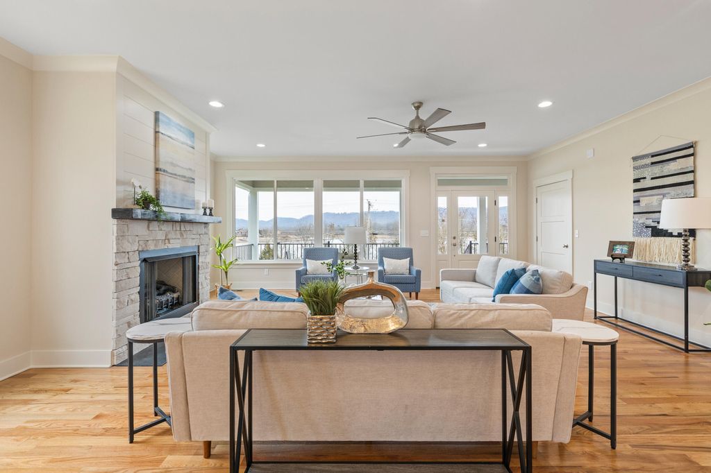 Overlooking the tranquil waters of Savannah Bay with distant mountain views, this brand-new luxury home is located in the highly desirable Ooltewah area"”with NO city taxes. Designed with an open-concept floor plan filled with natural light, the home showcases beautiful site-finished hardwood floors throughout. The inviting family room features a cozy fireplace and breathtaking lake and mountain views. The chef's kitchen is ideal for entertaining, offering quartzite countertops, stainless steel appliances, and high-quality cabinetry. Built with attention to detail, the home includes thoughtful upgrades such as reinforced flooring beneath the kitchen island, a French drain system around the foundation, and underground downspouts"”highlighting superior construction quality throughout. This thoughtfully designed residence offers three spacious en-suite bedrooms plus a powder room. The luxurious primary suite on the main level includes a spa-like bathroom with a garden soaking tub and two walk-in closets outfitted with Easy Track shelving for flexible use of the space. With over 3,450 square feet, the home also features a large upstairs bonus area"”perfect for a home office, playroom, or media room"”while enjoying outstanding lake and mountain views. Outdoor living is enhanced by a welcoming front porch and a private side deck with a retractable awning for shaded comfort. Situated on a 0.5-acre lot, the property includes an additional parking pad ideal for an RV, boat, jet skis, or guest parking. Residents also enjoy access to a private 4.5-acre community lake lot with picnic space and a boat ramp available for just $120 per year, plus a public boat launch conveniently located directly across the street. Ideally located near Harrison Bay State Park, Bear Trace Golf Course, The Ooltewah Club, Cambridge Square, and Island Cove Marina, this exceptional property offers luxury living, thoughtful construction, and unbeatable convenience. Book your private showing today!
