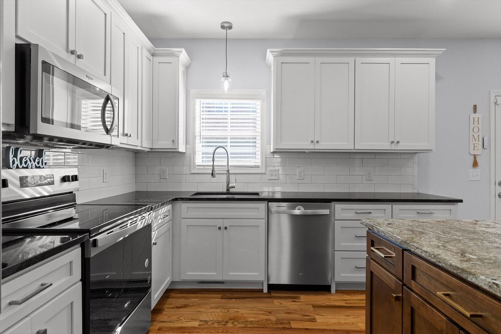 Built in 2025! Sellers change in life plans opens the door for a new owners GAIN! This beautifully designed cottage-style home blends classic charm with modern comfort in a highly convenient Cleveland location. From the inviting front porch to the thoughtful details throughout, it instantly feels warm, stylish, and easy to live in. Inside, the open layout is filled with natural light and features hardwood flooring throughout, creating a seamless and timeless look. The kitchen is both functional and eye-catching, offering granite countertops, an oversized island perfect for gathering, and stainless steel appliances that complement the space. A main-level half bath adds everyday convenience, while upstairs you'll find two spacious bedrooms, each with its own private en-suite bath, providing comfort and privacy for both owners and guests. The primary suite stands out with vaulted ceilings and a beautifully tiled shower that feels straight out of a magazine. A dedicated laundry area, outdoor deck with retractable sun shade is ideal for relaxing or entertaining, and the fenced in yard complete the home. Located just minutes from shopping, dining, schools, and everyday conveniences, this home delivers character, functionality, and value all in one making it a must-see for anyone looking for something truly special.