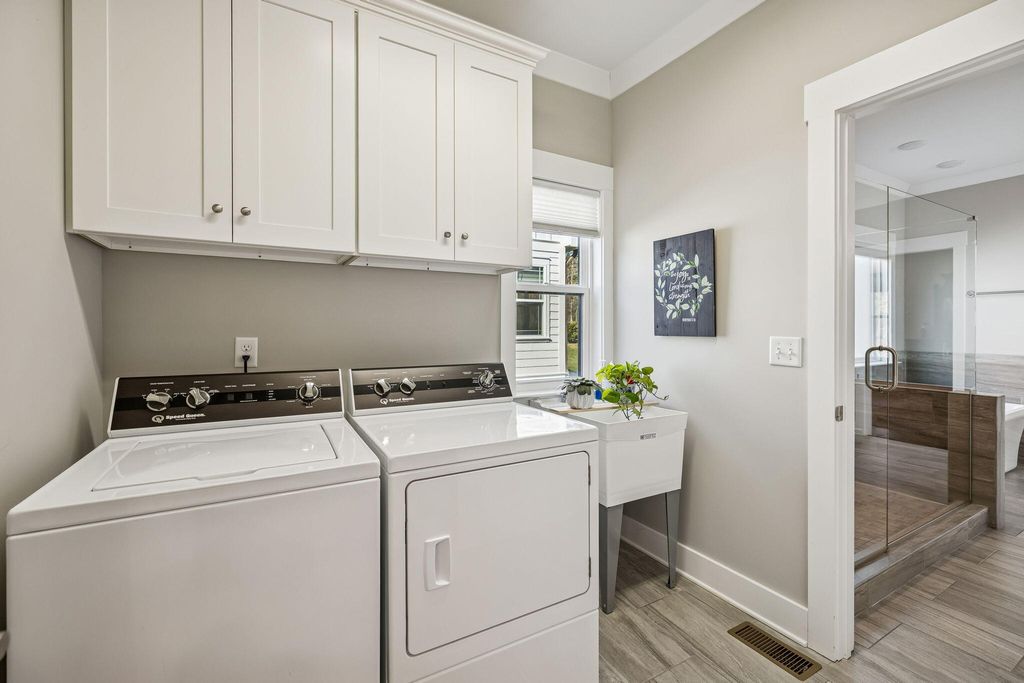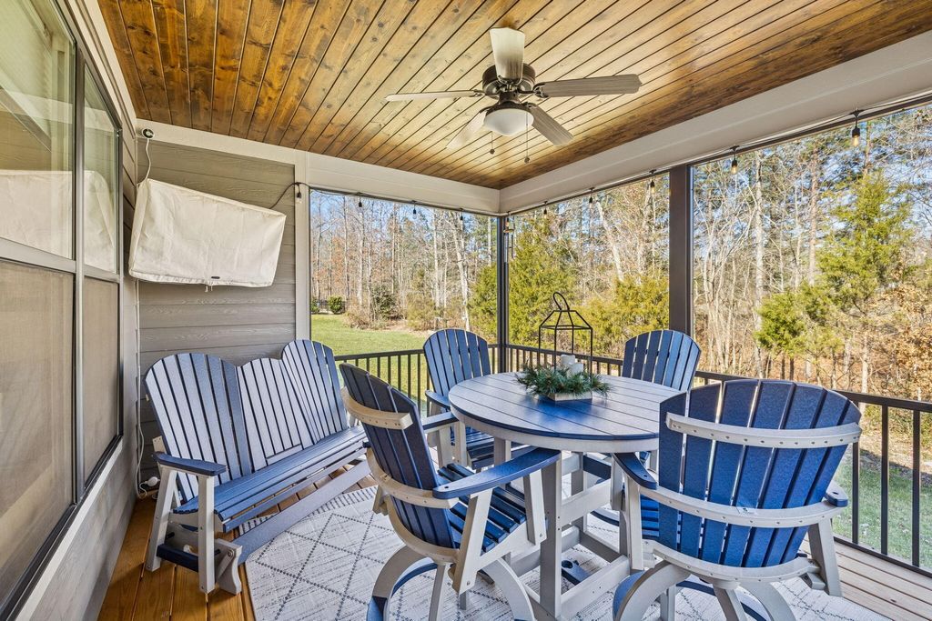 Rarely does a One-Level Home come along that truly lives better than new. *No stairs, no compromises. Just easy, open living with beautiful natural light* This home delivers the comfort, quality, and peace of mind today's buyers are searching for. This meticulously maintained home has been lovingly cared for and upgraded beyond builder standards. Offering move-in-ready ease with elevated finishes to smart improvements already in place. Move-In Ready Means Move-In Ready as this home includes all stainless steel kitchen appliances including the refrigerator, plus the commercial line Speed Queen washer & dryer and the extra outdoor living space at the covered and screened back deck where the TV remains to enjoy all the games. Generous custom moldings and trim with specified and stained wood tongue and groove ceilings, sharp style of shiplap, and popular board and batten finishes throughout. Tons of Storage, New Easy Attic Access/Storage, Extra large kitchen island, undercabinet kitchen lighting, wall oven, natural gas heating and cooking, extensive hardwood floors, Sunroom/Home Office with french doors, primary ensuite offers large double walk-in closets, barn door, and so much more. Purchased from the builder, but the thoughtful owners added Upgrades That Matter. -Custom Pantry Shelving and Storage for better organization. -Proactively adding a partially encapsulated crawlspace and dehumidifier for long-term comfort and care with optional transferable warranty. -The Garage is a Standout! Featuring the alternative polyaspartic flooring system, far superior to traditional epoxy, and smart, trimmed & insulated garage doors with belt-driven openers, LED lighting, cameras, battery backup, and MyQ app control. Plus a custom built garage storage with LED lights, chargers and magnetic remote. -Additional smart thermostat and Ring cameras remain at both the front and back of the home. - Outdoor living and curb appeal are elevated with professionally installed landscape lighting on timers, while the primary suite features blackout shades for added privacy and relaxation. Homes like this: single-level, upgrades, inclusions, and low-maintenance design are rarely available. Make your move now before this smart investment is claimed.