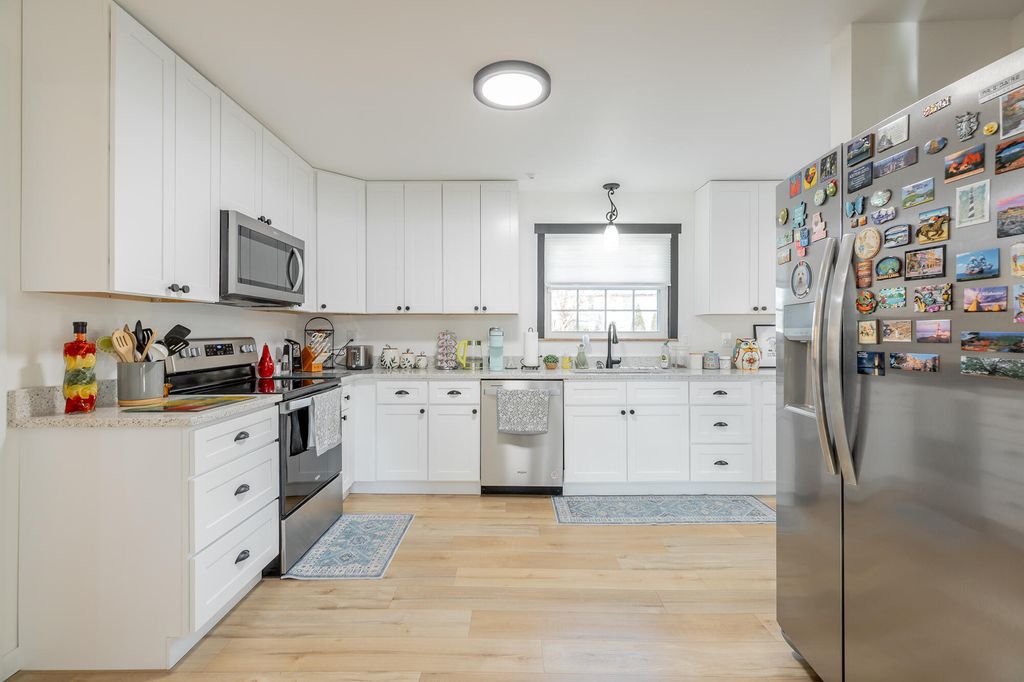 This stunning move in ready all brick one level home is a rare find on a spacious level lot in a quiet and friendly neighborhood just minutes from Hamilton Place Mall, shopping, dining, medical facilities, and quick access to I 75 and I 24 with only a short drive to downtown Chattanooga. Featuring 3 bedrooms and 2 full bathrooms, this beautifully remodeled home offers refinished original hardwood floors in the living room, dining room, and bedrooms, new luxury vinyl plank flooring in the kitchen and family room, and no carpet throughout. The bright updated kitchen showcases solid wood cabinetry, quartz countertops, stainless steel appliances, and a charming breakfast nook perfect for everyday living and entertaining. An expanded family room with a cozy gas fireplace adds approximately 180 square feet of additional living space. The private primary suite includes an ensuite bathroom with a walk in tile shower, while both bathrooms feature new vanities, mirrors, and modern lighting for a spa like feel. Exterior highlights include a fully fenced backyard ideal for pets and gatherings, brick exterior, leaf gutter guards, and double hung vinyl windows with lifetime warranty for low maintenance living. Additional features include a two car side entry garage, separate laundry room, attic storage with pull down stairs, storage closet, and tool room. Homes like this rarely come available offering remodeled one level living on a level lot in such a desirable location and this one is truly a must see.