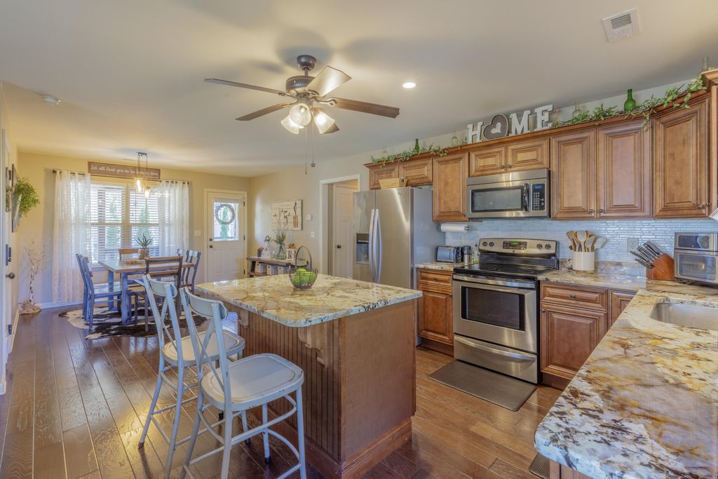 Charming Craftsman cottage in Chickamauga with scenic views and exceptional outdoor living! This beautifully designed one-level home features an open-concept great room, kitchen, and dining area, all seamlessly connected and accented by hardwood floors. Brand new, stunning quartzite countertops elevate the kitchen with high-end design and style, perfect for everyday living and entertaining.The thoughtful floor plan offers privacy, lots of outdoor living and all bedrooms are generously sized, making this an excellent layout for comfort and functionality. With three bedrooms and two full baths, this home truly lives large. Step outside and fall in love with the outdoor spaces "” three covered decks invite you to relax and take in the surroundings. The extended back deck off the primary suite is hot-tub ready, while the fenced backyard is perfect for kids and pets and backs up to peaceful woods for added privacy. Enjoy gorgeous Lookout Mountain views from the side porch just off the kitchen. Located in a small neighborhood with no HOA, this home offers privacy, charm, and convenience. Excellent one-level floor plan, beautiful setting, and qualifies for 100% USDA financing. Buyer to verify square footage.