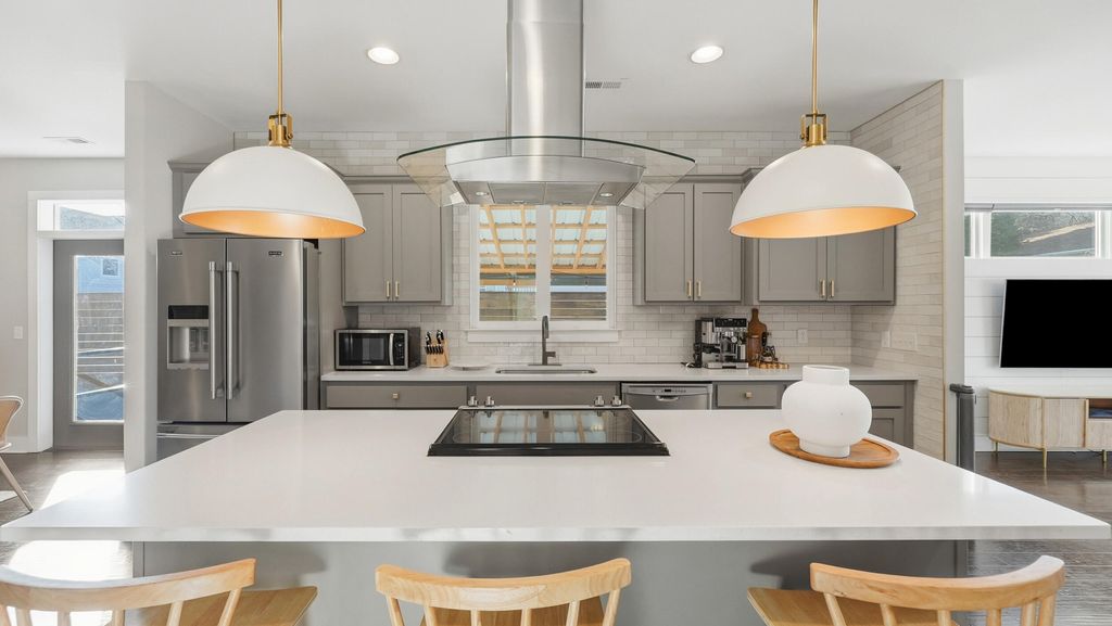 Welcome to modern living in the heart of downtown Chattanooga! Built in 2017, this beautifully upgraded 3-bedroom, 2.5-bath home sits on a rare flat lot in the highly desirable North Shore neighborhood of PEAK 7. Thoughtfully designed with style and function in mind, the home features eye-catching upgrades throughout, including shiplap accents, updated light fixtures, a refreshed kitchen backsplash with new cabinet hardware, custom laundry room cabinetry, and blinds throughout the home. The open-concept layout flows seamlessly to outdoor living, where you'll find a custom-built patio perfect for entertaining, plus a second private patio just off the primary suite--ideal for morning coffee or evening unwinding. A spacious 2-car garage with plenty of parking in the back. All appliances remaining, including washer and dryer. Enjoy unbeatable walkability to Publix, Milk & Honey, and Taco Mamacita, or take advantage of the Chattanooga Bicycle Transit System for an easy ride to the Riverwalk. The HOA covers lawn care, annual mulching, and trimming, giving you more time to enjoy everything downtown has to offer. Community common space in the back adds even more room to relax and connect. To top it off, a 1-year home warranty is included for peace of mind. Modern, low-maintenance, and perfectly located - this North Shore gem checks all the boxes. Owner/Agent