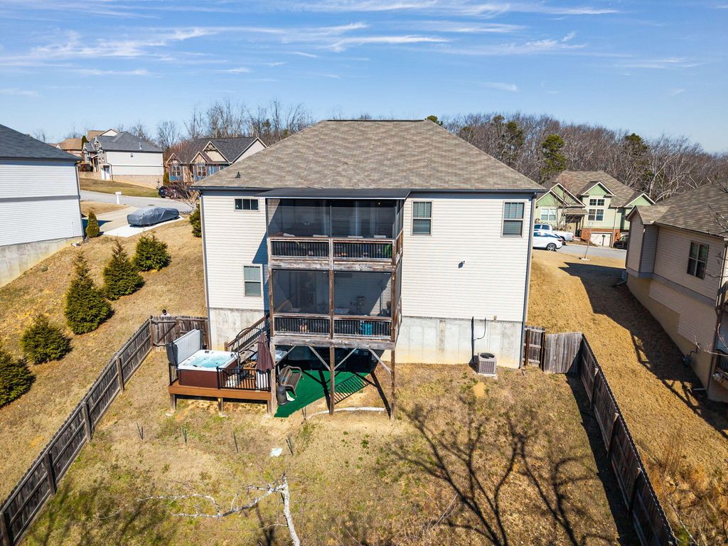 Welcome home to this beautifully maintained 3-bedroom, 3 full-bath residence located in the desirable Hamilton on Hunter West subdivision. Designed with comfort and flexibility in mind, this home features an open-concept main living area with hardwood floors throughout the main level and stainless steel appliances in the kitchen--perfect for everyday living and entertaining. The spacious primary suite offers a private en suite bath complete with a separate shower and soaking tub, a walk-in closet, and ceiling fans for added comfort. All bedrooms include ceiling fans, and the home continues to impress with a fully finished basement, featuring a full-size bathroom and a large closet--ideal for a guest suite, home office, or bonus living space. Outdoor living truly shines with three decks, including a screened-in deck with a ceiling fan where you can relax and enjoy mountain views and unforgettable summer sunsets. The fenced backyard provides added privacy, while the two-car garage offers extra storage space. NOTE: The refrigerator, hot tub, washer, and dryer do not convey with the property. The refrigerator in the garage will remain at the property. Call today for more details and to learn how to make this home yours.