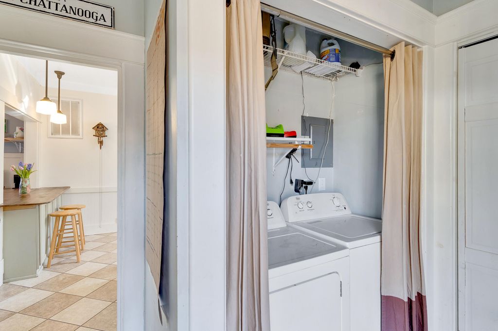 Welcome to a beautifully updated 1930s Craftsman in the heart of North Chattanooga, where timeless character meets a modern, thoughtfully designed floor plan. Set on a rare private double lot, this home offers exceptional indoor and outdoor living ideal for entertaining and everyday comfort. Multiple outdoor spaces, including a spacious deck and screened porch, create the perfect setting for gatherings or quiet moments, all within a fully fenced yard that feels like a true retreat. Recent improvements include a newly built deck, fresh exterior trim, added gutters, and a brand new roof, providing long term peace of mind. Inside, the remodeled kitchen features granite countertops, new stainless steel appliances, and an open connection to the dining area, perfect for hosting or casual meals. Hardwood floors, a cozy fireplace, and a functional mudroom and laundry space add warmth and practicality to the main level. The home has been refreshed with new paint throughout and new carpet upstairs. The primary suite on the main floor offers a peaceful escape with a spa inspired en suite featuring a soaking tub, tiled walk in shower, double vanities, and generous walk in closets. Upstairs, two additional bedrooms, a full bath, and ample storage provide flexibility for guests or a home office. Major behind the scenes updates include a structurally improved crawl space with full encapsulation, reflecting over fifty thousand dollars in recent improvements. Enjoy a highly walkable lifestyle just minutes from Stringer's Ridge trails, the Walnut Street Bridge, riverfront parks, shops, dining, and the award winning Normal Park School. Lovingly maintained and move in ready, this North Chattanooga home is ready for its next chapter.