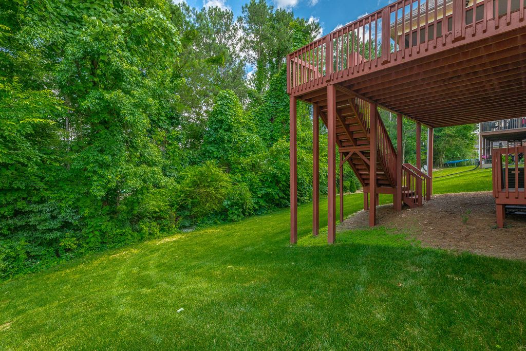 Custom built and completed in March of 2006, this one-owner SINGLE LEVEL Wellesley home in Ooltewah is now available and ready for its next chapter! This 2,742 SF split bedroom style home boasts a total of 4 bedrooms and 3.5 baths, with 3 bedrooms and 2.5 baths on the main level. The spacious Primary Suite, located on the main level, features a double tray ceiling and a private bath with a walk-in closet, double-sink vanity, water closet, separate shower, and a six-foot jetted tub. Also on the main level, two guest bedrooms that share a convenient jack-and-jill bath. A versatile bedroom with a full bath upstairs provides an additional bedroom or flex space. Well-maintained with many updates over the years, this home showcases a freshly painted interior and exterior (June 2025), new plumbing fixtures, new carpet throughout, a GAF roof (replaced May 2020), Goodman HVAC (2025), and a 50-gallon electric water heater installed in 2025. The open floorplan combines a Great Room with a gas log fireplace, a Dining Room, and a welcoming Entry Foyer, all enhanced by raised ceilings, decorative trim and moldings, and hardwood floors. The Kitchen and Breakfast area flow together, offering a pantry, ample cabinetry, stainless appliances (including a newer range and microwave), and granite countertops. French doors open from the Breakfast area to a spacious, recently redone screened porch, perfect for enjoying views of the private backyard and White Oak Mountain. Step onto the uncovered deck, also recently redone, with stairs leading down to a concrete patio at ground level. The main level also includes a two-car garage with an epoxy floor, entering into a hallway near a separate Laundry room and the Kitchen. Hardwood and tile flooring grace much of the home, along with new carpet in the bedrooms. The exterior of the home has been updated with fresh paint.