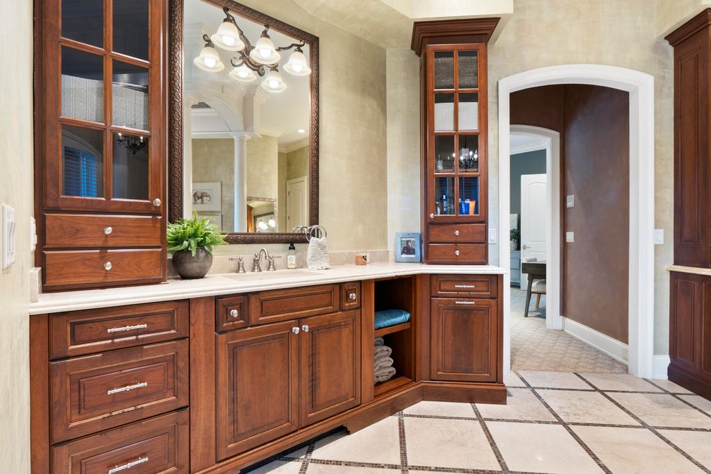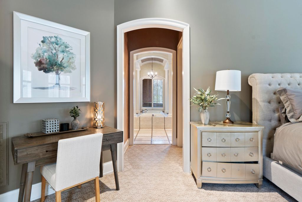 | INTERIOR | Cathedral Ceiling(s), Ceiling Fan(s), Chandelier, Coffered Ceiling(s), Crown Molding, Double Vanity, Entrance Foyer, Granite Counters, High Ceilings, High Speed Internet, Kitchen Island, Master Downstairs, Natural Woodwork, Open Floorplan, Pantry, Recessed Lighting, Soaking Tub, Sound System, Storage, Tray Ceiling(s), Vaulted Ceiling(s), Walk-In Closet(s), Wet Bar, Wired for Sound |