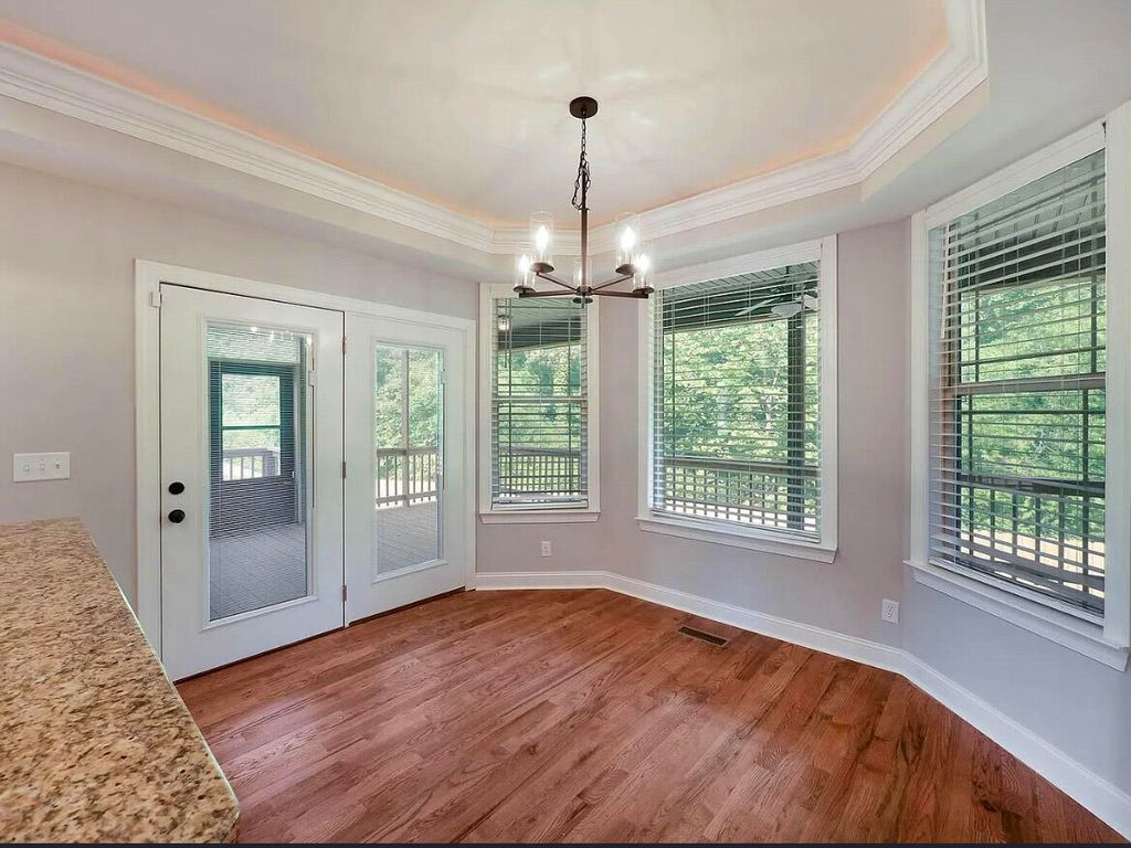 Beautiful 4 bedroom, 2.5 bath home in a great location, super convenient to lots of restaurants and shopping, as well as minutes to I 75. Hardwood floors throughout the main floor; dining room and additional room on the main floor; primary bedroom on main with a spacious bath with a double sink vanity, jetted tub, separate shower, and walk in closet; kitchen offers lots of counter and cabinet space, stainless steel appliances and a pantry; laundry off of kitchen; eat in kitchen area; granite countertops in kitchen and baths; gas fireplace in living room; half bath on main; carpeted bedrooms upstairs with a hardwood loft/landing at the top of stairs; full bath upstairs; freshly painted interior; large screened deck; fenced in back yard; attached 2 car garage on main level, flat driveway. Vacant and ready to call home!