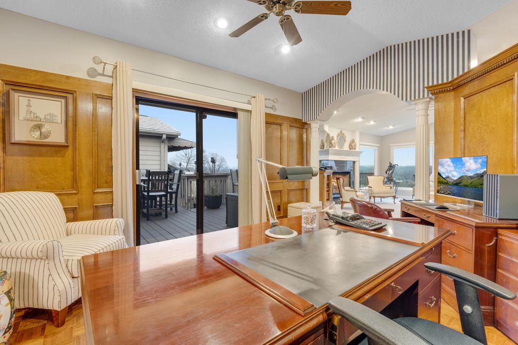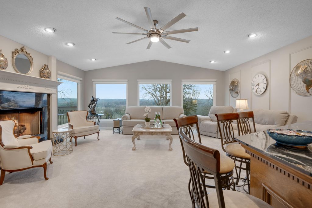 One of the largest townhomes in the prestigious and highly sought-after Eagle Bluff community is now available. Offering over 3,500 square feet of thoughtfully designed living space, this exceptional residence combines comfort, breathtaking views, and serene surroundings. Also, has approximately 500 sq ft of heated and cooled storage room. The main level features a spacious primary suite complete with a cozy fireplace and private access to the deck. The living room is a true showstopper, showcasing expansive windows that capture sweeping 180-degree views of the mountains and lake. Step onto the deck or simply relax inside while overlooking a tranquil outdoor sanctuary featuring a water element and natural rock accents--an ideal setting for peaceful mornings or unwinding at the end of the day. This sanctuarly is part of the large yard that is owned by this property. The main level includes two bedrooms, one and a half bathrooms, a well-appointed kitchen with breakfast area, formal dining room, office space, and the main living area--perfect for everyday living and entertaining. The lower level offers a large den with patio and backyard access, two generously sized bedrooms with walk-in closets, and a recently updated full bathroom. A 500-square-foot heated and cooled storage area provides exceptional space and flexibility. Lovingly maintained by the original owner for 25 years, this home reflects pride of ownership throughout. The seller has cherished the warm, welcoming feel of the Eagle Bluff community and the safety and camaraderie of its neighbors. The stunning lake and mountain views--especially from the living room--will be dearly missed. Additional features include handicap-accessible enhancements such as a chair lift on the stairs and an accessible tub/shower combination in the upstairs bathroom. This remarkable home offers space, comfort, and an unmatched setting in a community you'll be proud to call home.