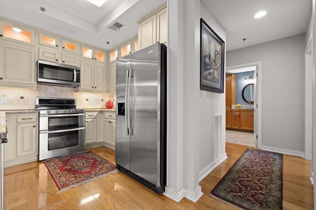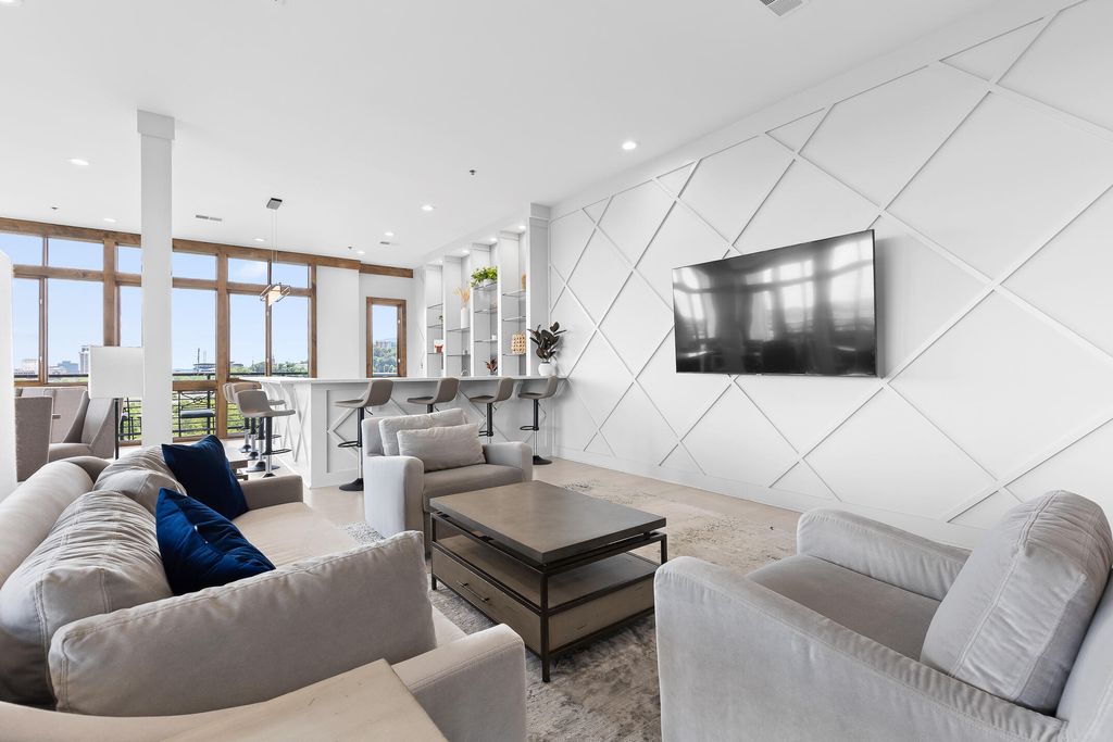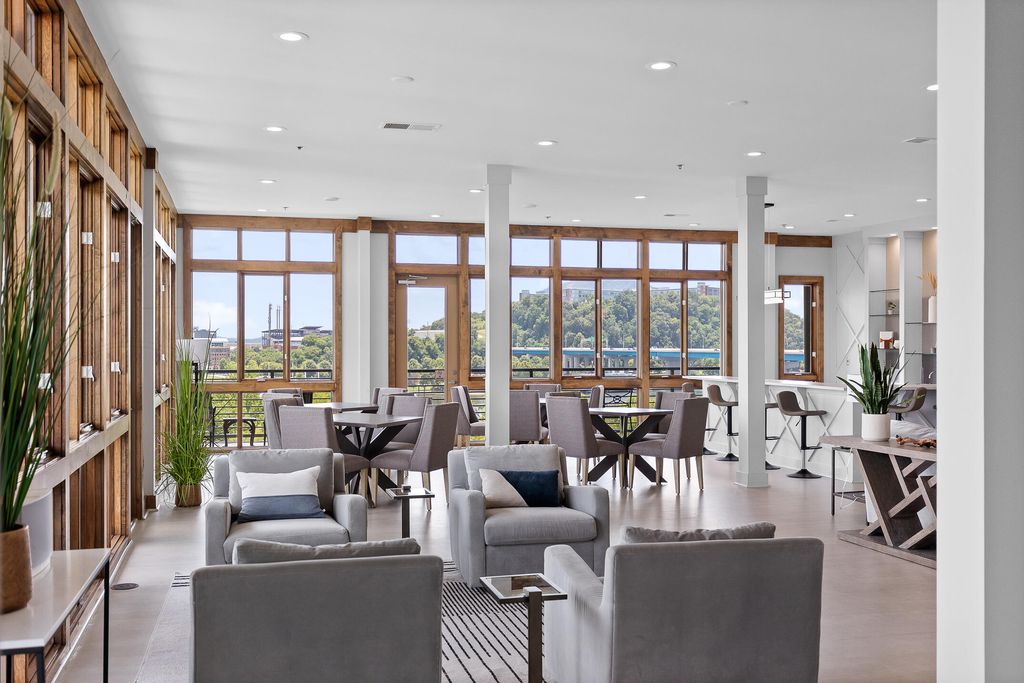 Welcome to One North Shore, one of Chattanooga's most sought-after luxury condo communities in the heart of North Chattanooga. This rare 1,467 sq ft residence features one of the largest floor plans in the building and a private recessed entry"”an architectural detail enjoyed by only a handful of units. Filled with incredible natural light, the open living, dining, and kitchen spaces feel bright and inviting. The remodeled kitchen offers solid wood cabinetry, granite and quartz countertops, under-cabinet lighting, double ovens, wine cooler, and a large pantry which is ideal for everyday living and entertaining. A true standout feature is the spacious laundry room with room for side-by-side appliances, a rarity in the building. The oversized walk-in closet provides exceptional storage. Both spa-inspired bathrooms are updated with high-end Toto Washlets and quality fixtures. Herringbone tile floors, electric blinds, premium ceiling fans, and newly carpeted bedrooms enhance comfort and style throughout. Two private balconies extend the living space outdoors, each accessible from the main living areas and bedrooms, offering sweeping views of Renaissance Park, the Tennessee River, Walnut Street Bridge, and Market Street Bridge. Enjoy seasonal fireworks and year-round scenery from home. Residents enjoy resort-style amenities including concierge service, secure private parking in the garage, a fitness center, pool with cabana, outdoor fire table, dog park, and seventh-floor penthouse clubroom with panoramic city and mountain views. Walkable to all of North Chattanooga and just steps to the Walnut Street Bridge, Coolidge Park, shopping, dining, grocery stores, and downtown Chattanooga, this home is also in close proximity to trails, water access, and the Chattanooga Riverwalk. Luxury, convenience, and low-maintenance living in one of the city's most desirable locations. Buyer to verify all info.