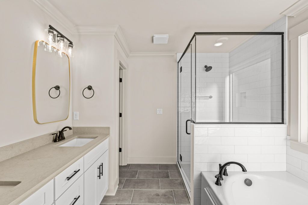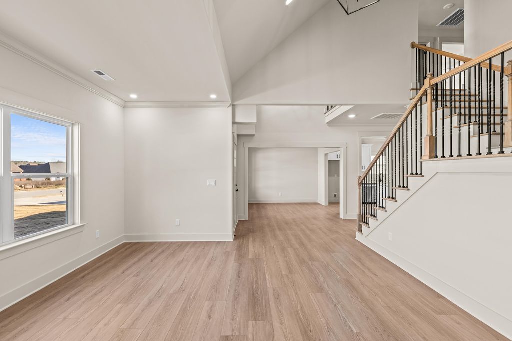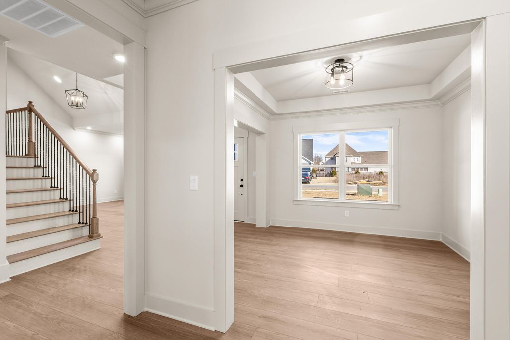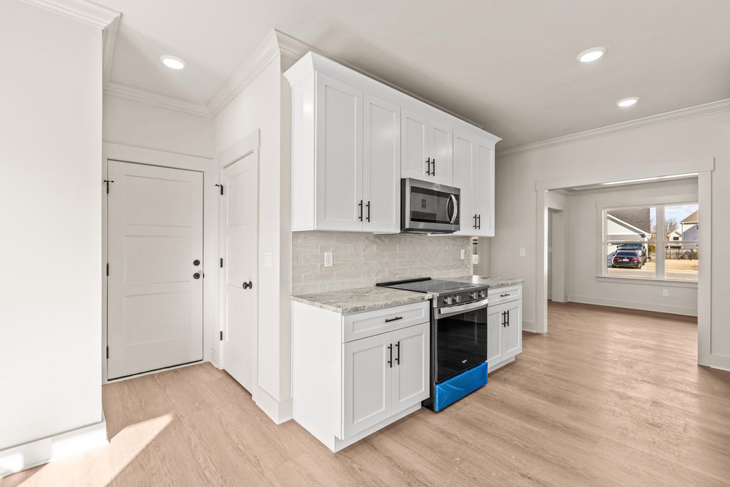 Open House Sunday 2-4pm! Discover modern comfort in The Grove, a highly convenient Ringgold neighborhood zoned for sought-after Heritage schools: Battlefield Elementary, Heritage Middle, and Heritage High (buyer to verify schools and features). This brand-new, 3-bedroom, 2.5-bath home sits on a desirable corner lot and offers 1,875 square feet of thoughtfully designed living space. Enjoy covered front and back porches with brick accents, low-maintenance fiber cement siding, low-E vinyl windows, a zero-entry raised slab foundation, and a fully sodded, landscaped yard. Nestled in a charming, sidewalk-lined community, residents benefit from a swimming pool, scenic pond, and extensive walking paths. Commuting is effortless - just 2.7 miles to I-75 at Battlefield Parkway, approximately 19 minutes to downtown Chattanooga, and 23 minutes to Dalton. Step inside to a welcoming Great Room featuring a vaulted ceiling and durable, waterproof, scratch-resistant luxury vinyl plank flooring that flows seamlessly into the Kitchen and Dining areas. The well-appointed Kitchen includes granite countertops, a stainless steel sink, Whirlpool stainless steel appliances, soft-close cabinetry, a generous pantry, and a stylish Zillege tiled backsplash. An adjacent breakfast area opens directly to the covered back porch - perfect for outdoor relaxation. Upstairs, the primary suite impresses with a double-tray ceiling, a spacious walk-in closet, and a luxurious ensuite bath boasting an oversized tiled shower, 6-foot soaking tub, Delta fixtures, and quartz countertops. Bedrooms 2 and 3 share a large hall bath with a double-sink vanity, while the convenient upstairs laundry room adds everyday ease. This floor plan stands out with generously sized bedrooms and closets...offering more space than many comparable homes. Plus a builder's new home warranty for complete peace of mind! Unwind on your back porch with picturesque sunsets over the community pond, or explore the neighborhood's walking paths. Move-in ready and blending warmth, style, and community charmthis home is waiting for you. Ask about our new homebuyer program that make it easy to go from renting to owning! Schedule your private tour today!