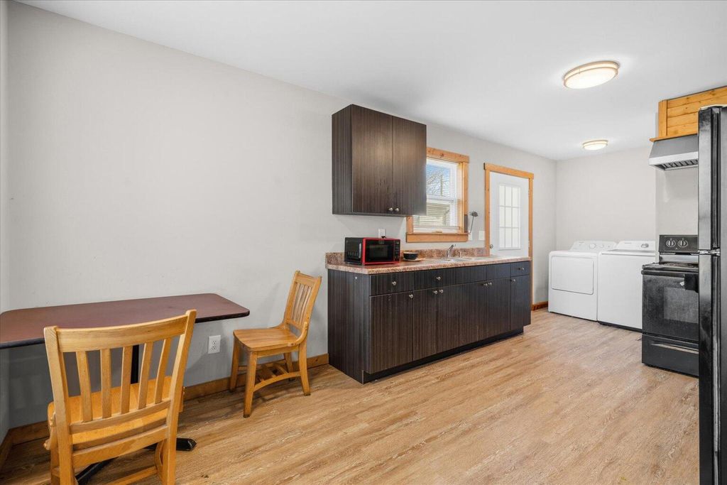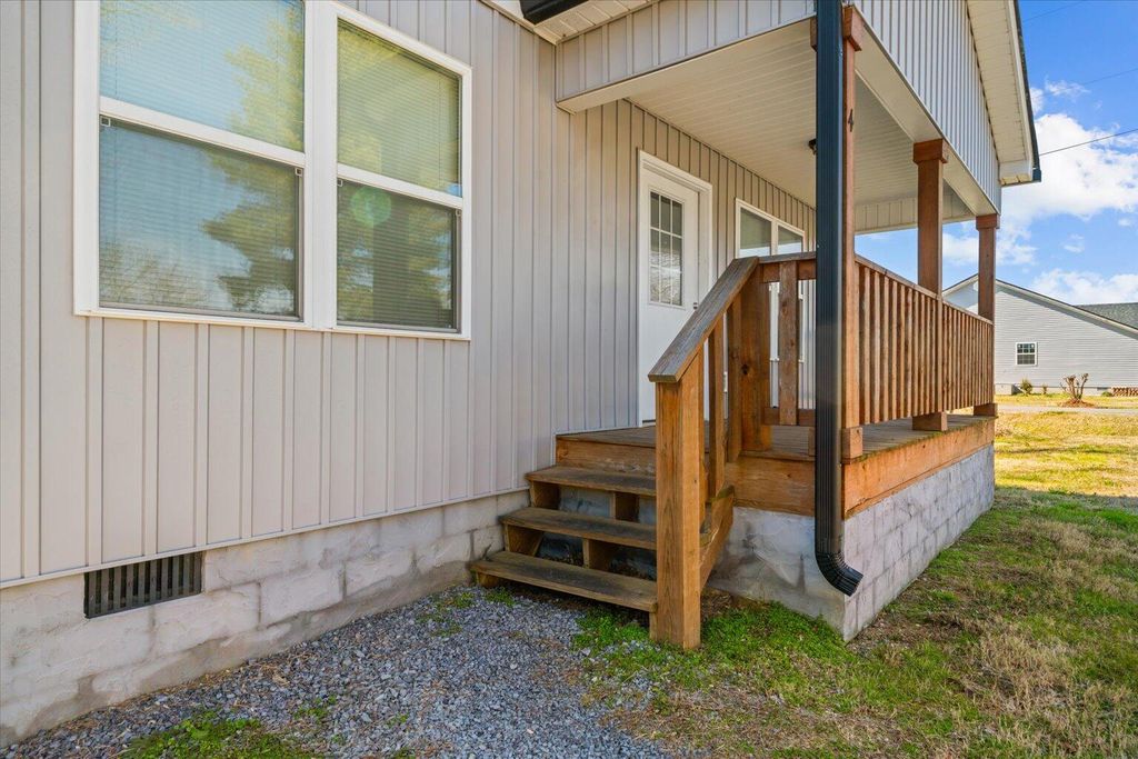 Welcome to a well-maintained 3 bedroom, 2 bath home offering comfortable living spaces and easy everyday functionality. Inside, you'll find durable flooring throughout and a bright living area with a vaulted wood-plank ceiling that adds character and warmth. The kitchen features ample cabinet space, laminate countertops, and dining area, creating a simple and efficient setup for daily living. Both bathrooms offer modern vanities and clean finishes, while the bedrooms provide comfortable space and ceiling fans for added comfort. Outside, the home features a covered front porch and a rear entry with steps leading to the yard. Whether you're a first-time buyer, someone looking to downsize, this home offers a great combination of functionality and location.