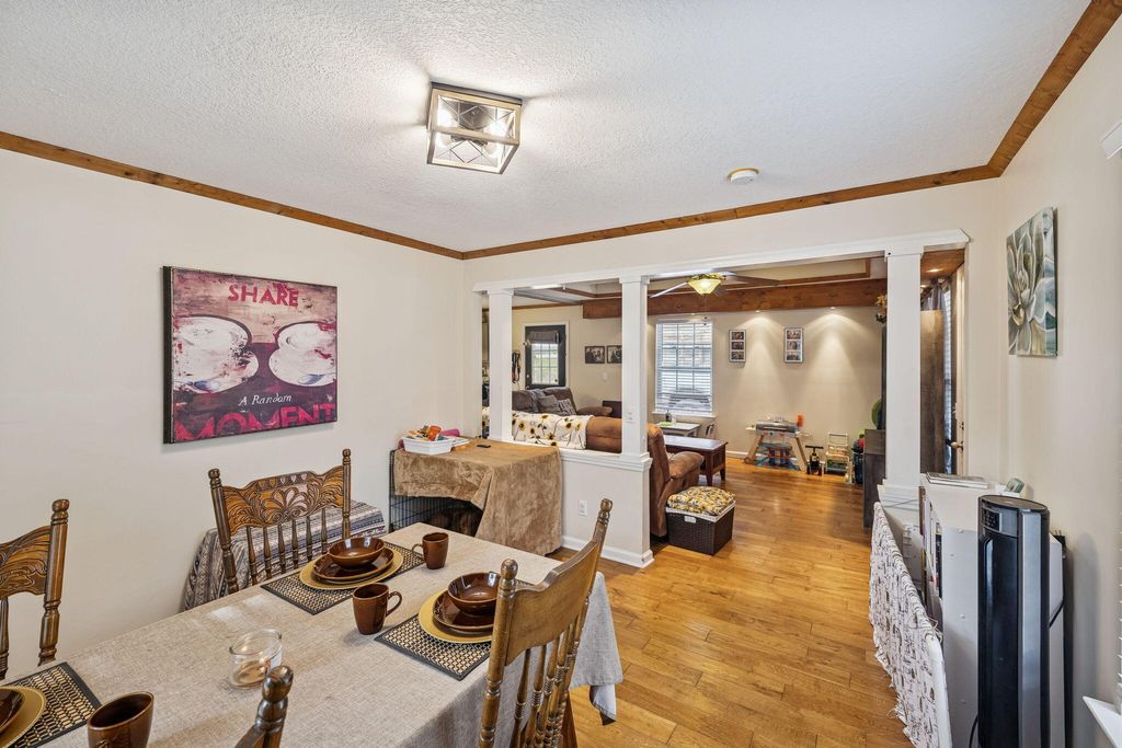 Welcome home to this cute bungalow-style home conveniently located in the heart of LaFayette! This charming property offers an open floor plan with three bedrooms and two full bathrooms, designed for comfortable everyday living. Step inside to beautiful hardwood floors and a spacious living area featuring a stunning tray ceiling that adds character and style. The kitchen is perfect for entertaining with a prominent island, kitchen bar seating, plenty of cabinet space, and a separate dining room for more formal gatherings. Enjoy relaxing mornings or evenings on the inviting rocking chair front porch. The level yard offers space to unwind, garden, or play. Conveniently located just a short drive to Chattanooga, this home provides small-town charm with easy access to city amenities.
