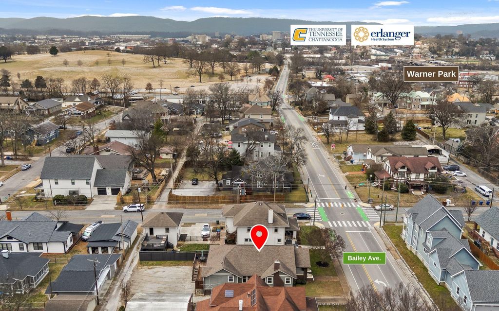 CLASSIC HIGHLAND PARK! 1920s charmer WALKABLE to local parks and 5 min. to downtown. Admire the coveted covered front porch and abundant off-street parking with driveway and alley access. Original solid hardwood floors, 1 level living, and 4 bedrooms! Stunning living room filled with natural light, brick wood-burning FIREPLACE, wood ceiling accents, and built-in shelving that radiates character. The open kitchen offers abundant white cabinetry, stone countertops, island seating, stainless appliances, and space for a breakfast nook. Updated full bath with dual vanities plus an en-suite in the primary bedroom. The front room is ideal for a home office with EPB fiber-optic gig-speed internet. Maximize thoughtfully-planned BASEMENT ideal for laundry, movie den, playroom, or storage haven, along with generous crawlspace storage. The spacious back deck invites weekend grilling or morning coffee. Chattanooga's Highland Park community offers in-town living with a neighborhood feel. Walkable access to Together Cafe, Warner Park, Chattanooga Zoo, Tatum Park, BlueCross Healthy Place, Highland Park Playground, Chattanooga Girls Leadership Academy, Chattanooga Preparatory School, and more. With the prime location, off street parking, and vintage charm, consider this home as a rental property for your investment portfolio. Schedule your private showing today. (Buyer to verify square footage. Some images may be virtually staged. Buyer is responsible for doing their due diligence to verify that all information is correct, accurate, and for obtaining any and all restrictions for the property deemed important to Buyer.)